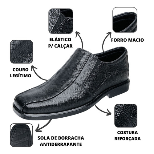 Sapato Social Masculino Couro Bovino Confortável Bom P/ Eventos Em Geral Derby Bico Quadrado