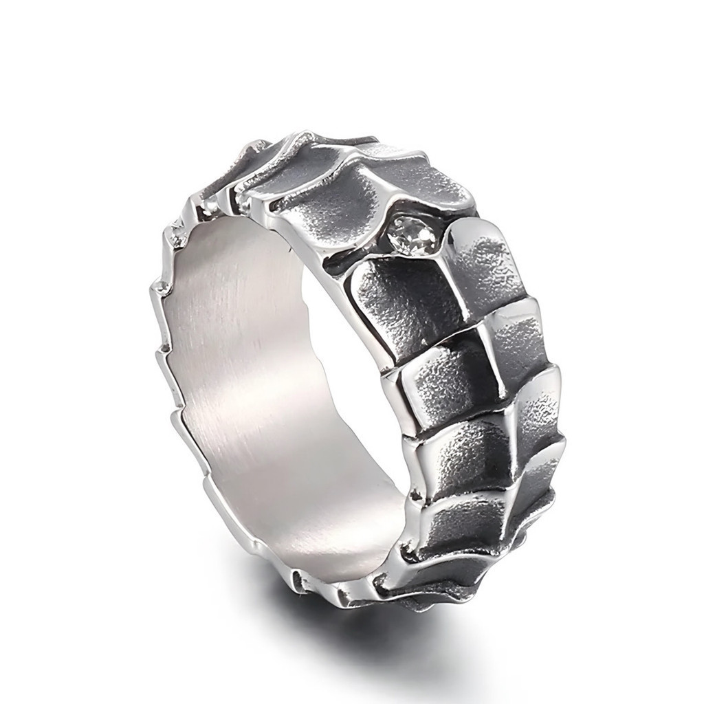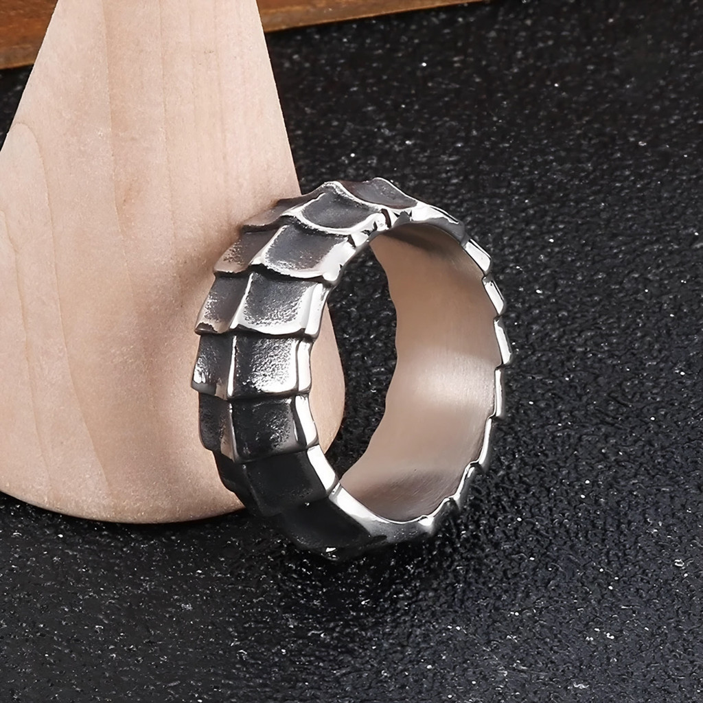 Anel Masculino Escama de Cobra Snake Aço Titânio C/Caixinha