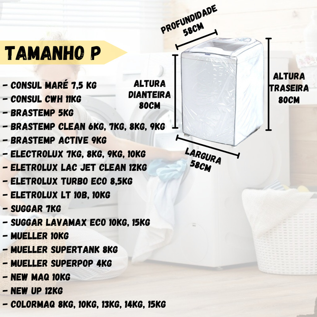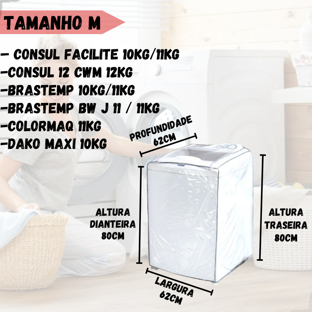 Capa Máquina Lavar Transparente Diversos Tamanhos Electrolux Consul Brastemp 8 9kg 10kg 11kg 12kg 13kg 14kg 15kg 16kg