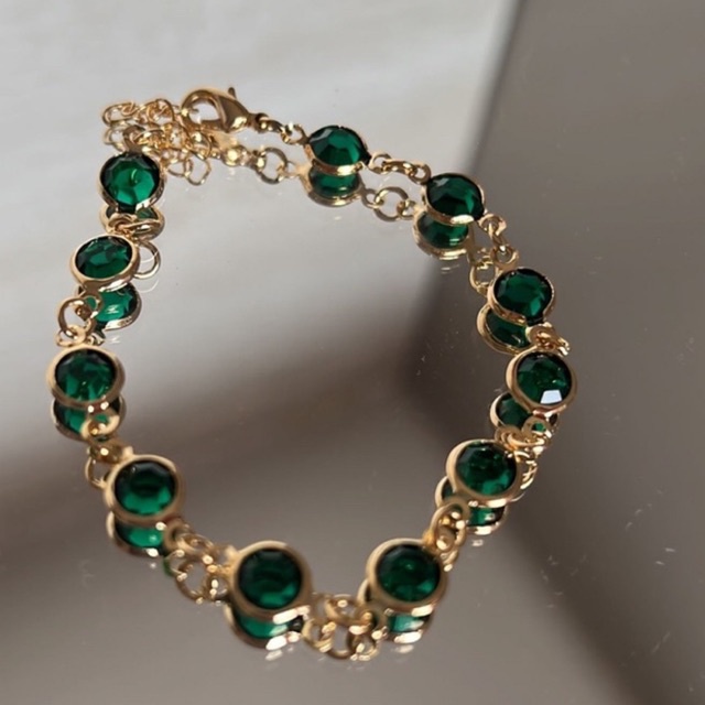 Pulseira Pedraria Verde Esmeralda Dourada Inspiração Tifani