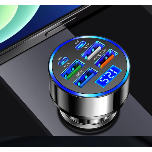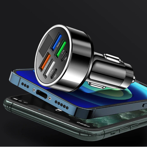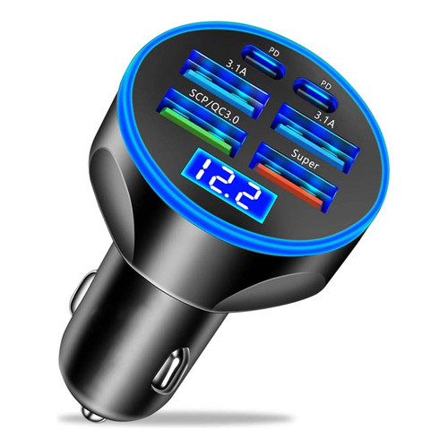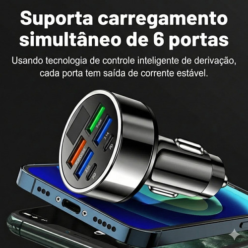 Adaptador Usb Tomada 12v Carro Carregador + 6 Portas Celular Preto