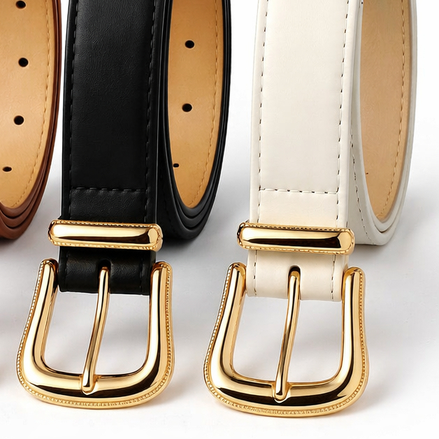 Kit Cintos Feminino da Moda Ajustavel Com Fivela Dourada Estilosa Casual Para Jeans Vestido Saia Shorts