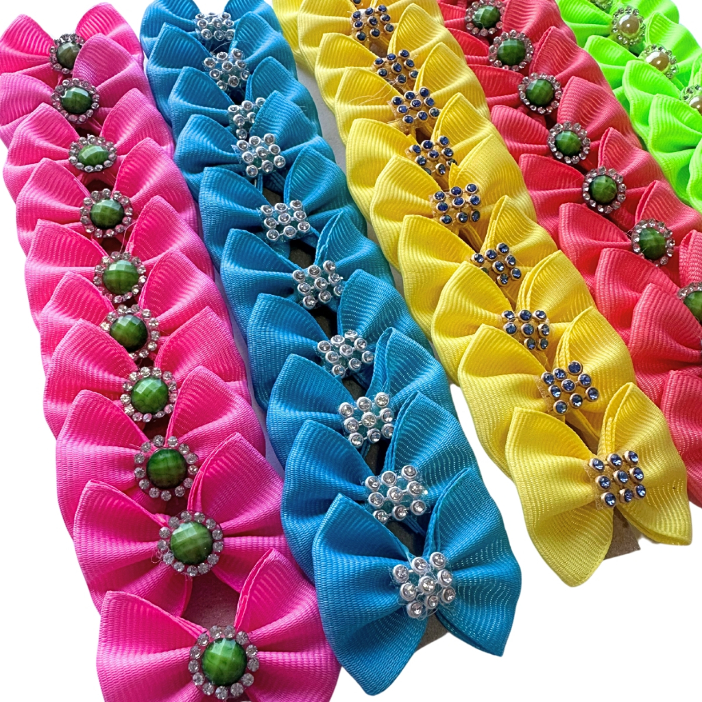 Kit 50 a 100 Laços pet Cachorro Banho e Tosa Sortidos Tamanho M - Lacinho Pet Cães Premium
