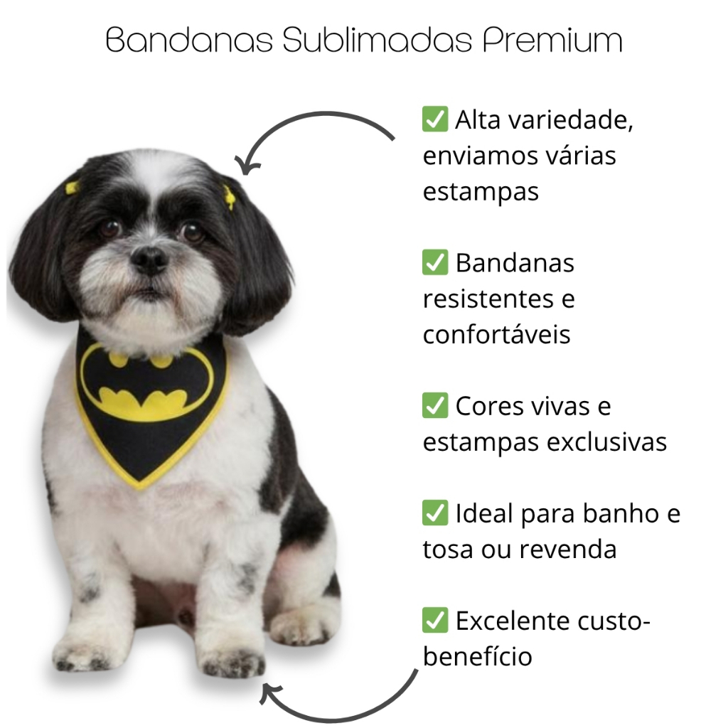 Kit Bandanas Sublimadas Alta Qualidade para Pet Shop – Estampas Sortidas Premium Tamanho P M GG
