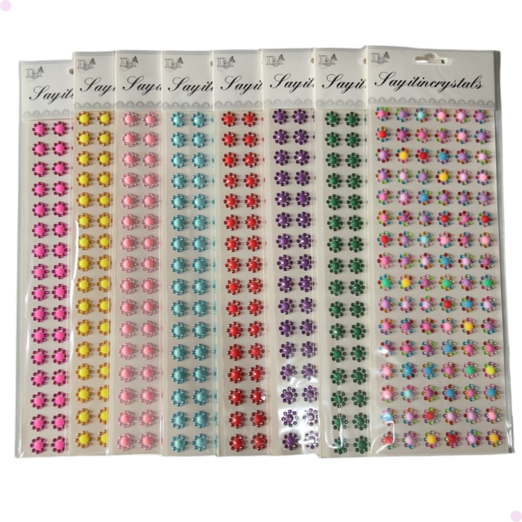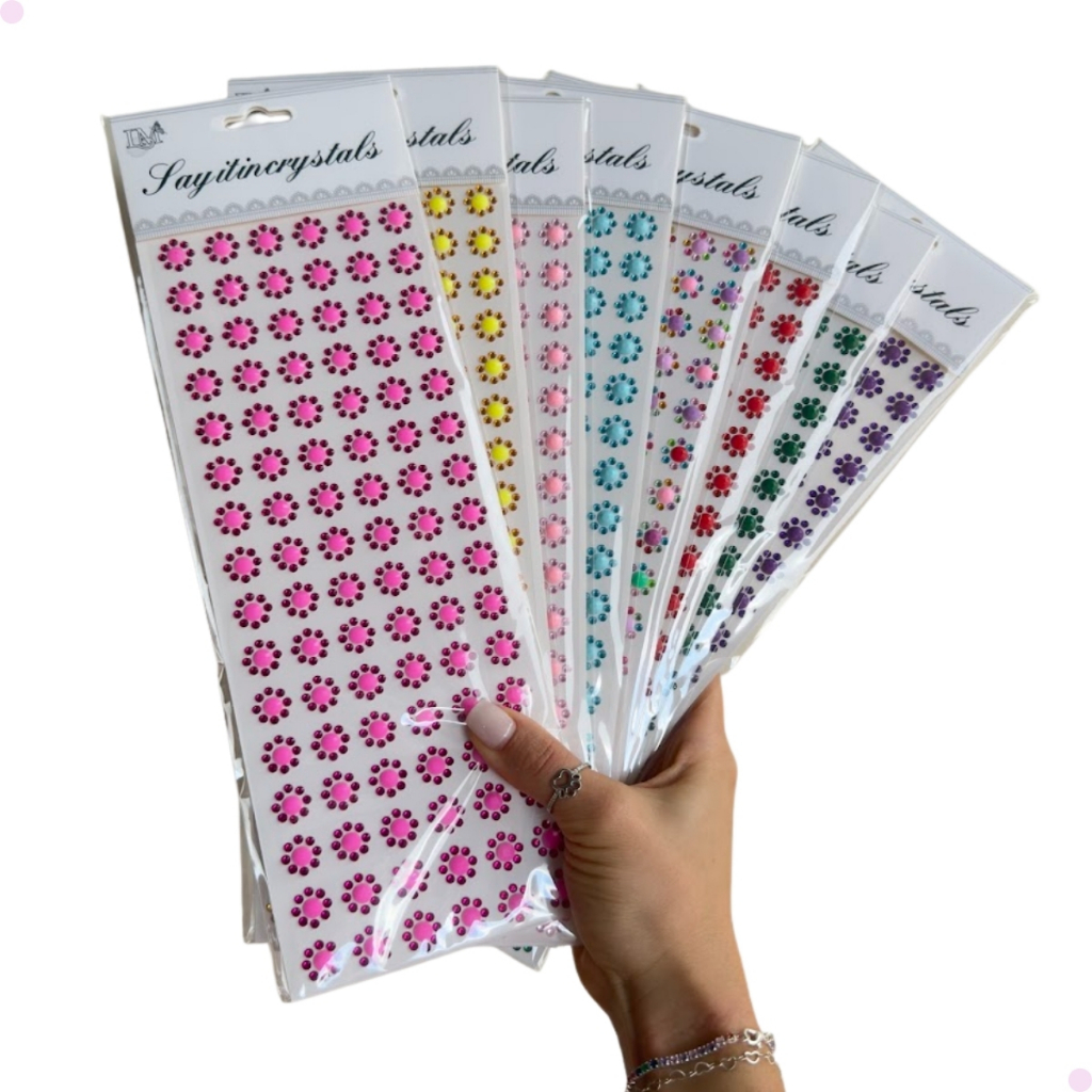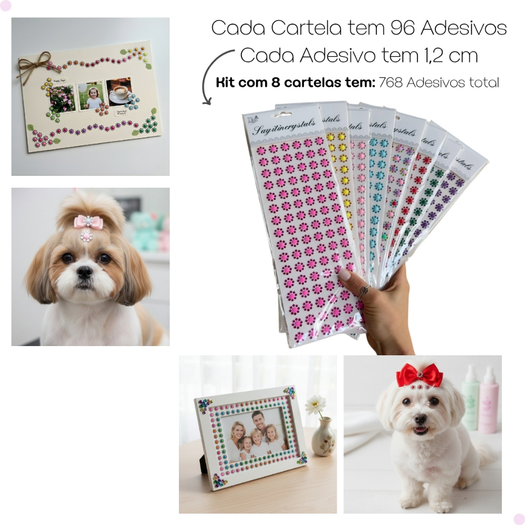 Kit 768 Adesivos Cristal Strass Neon 8 Cartelas Para Pets Banho e Tosa Artesanato e Personalização