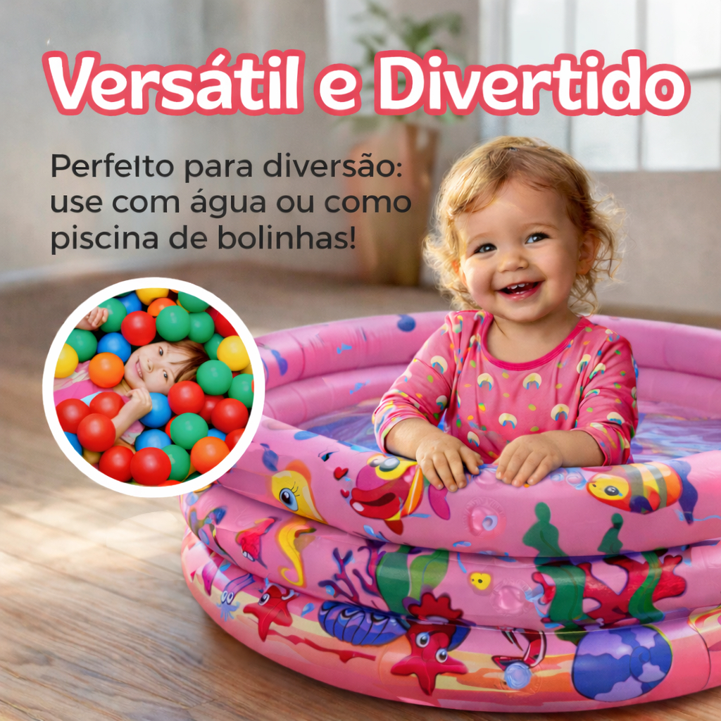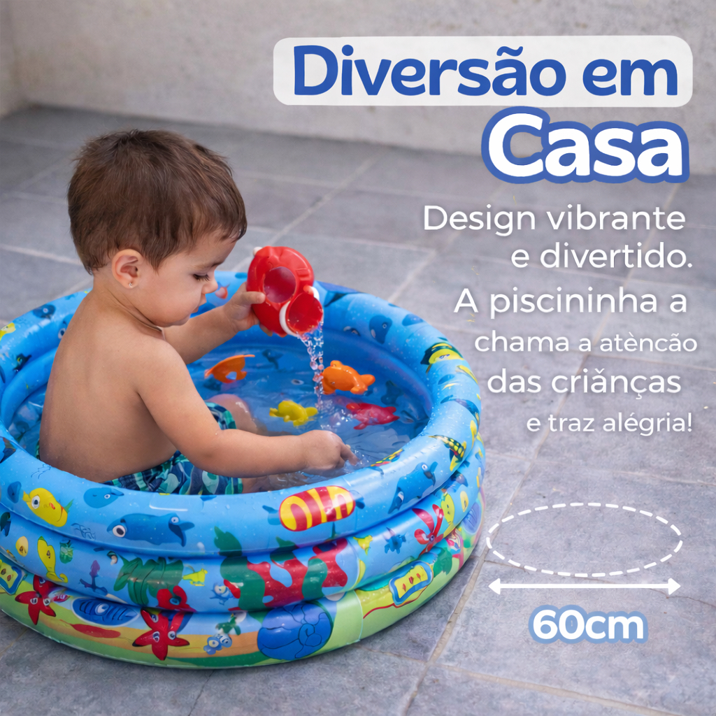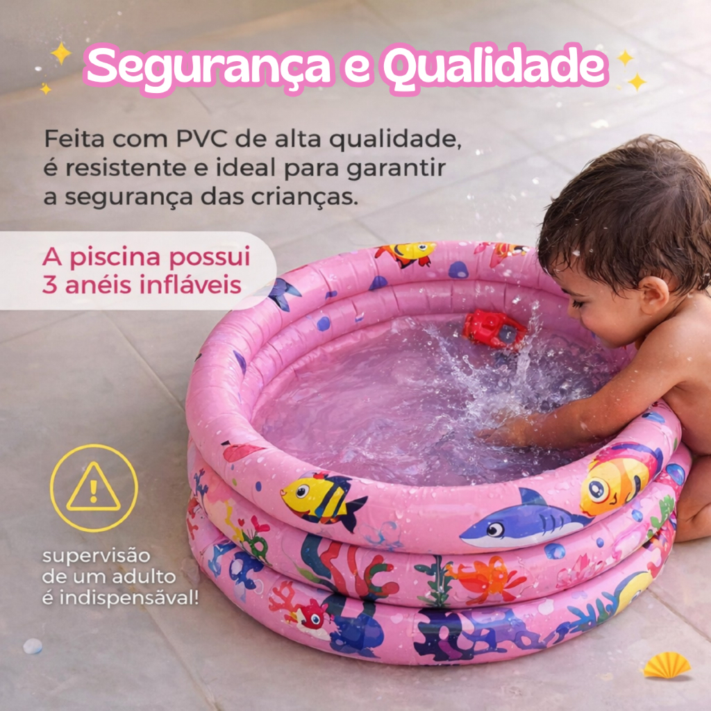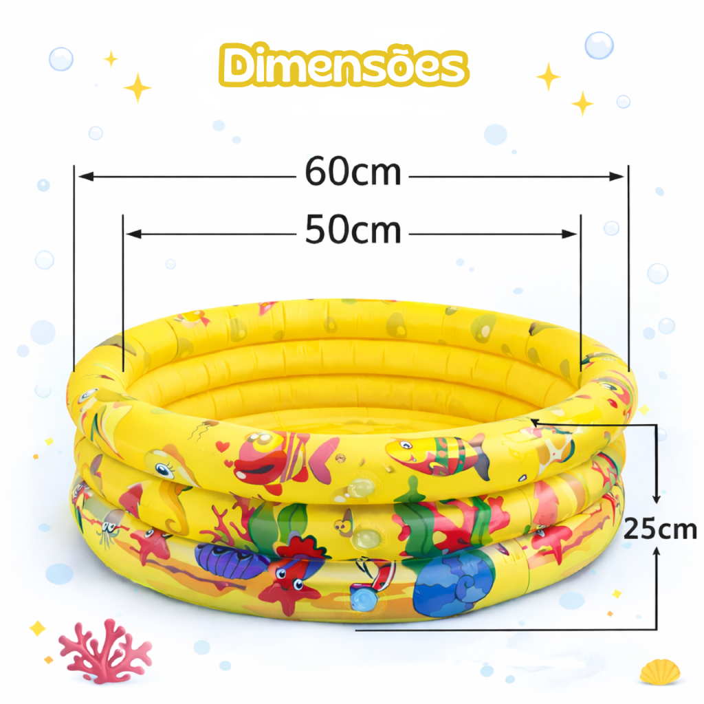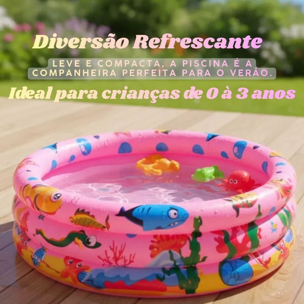 Piscina Redonda Inflável 3 Anéis Bebê Verão Menino Menina 40 Litros 60cm
