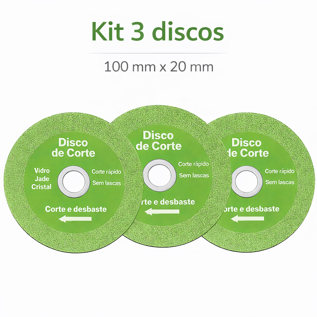Disco de Corte Diamantado para Vidro Porcelana Piso Cerâmica Verde 100mm Kit 1/3/5