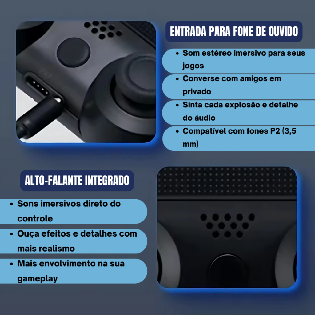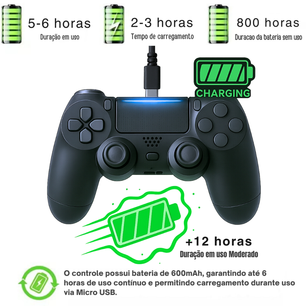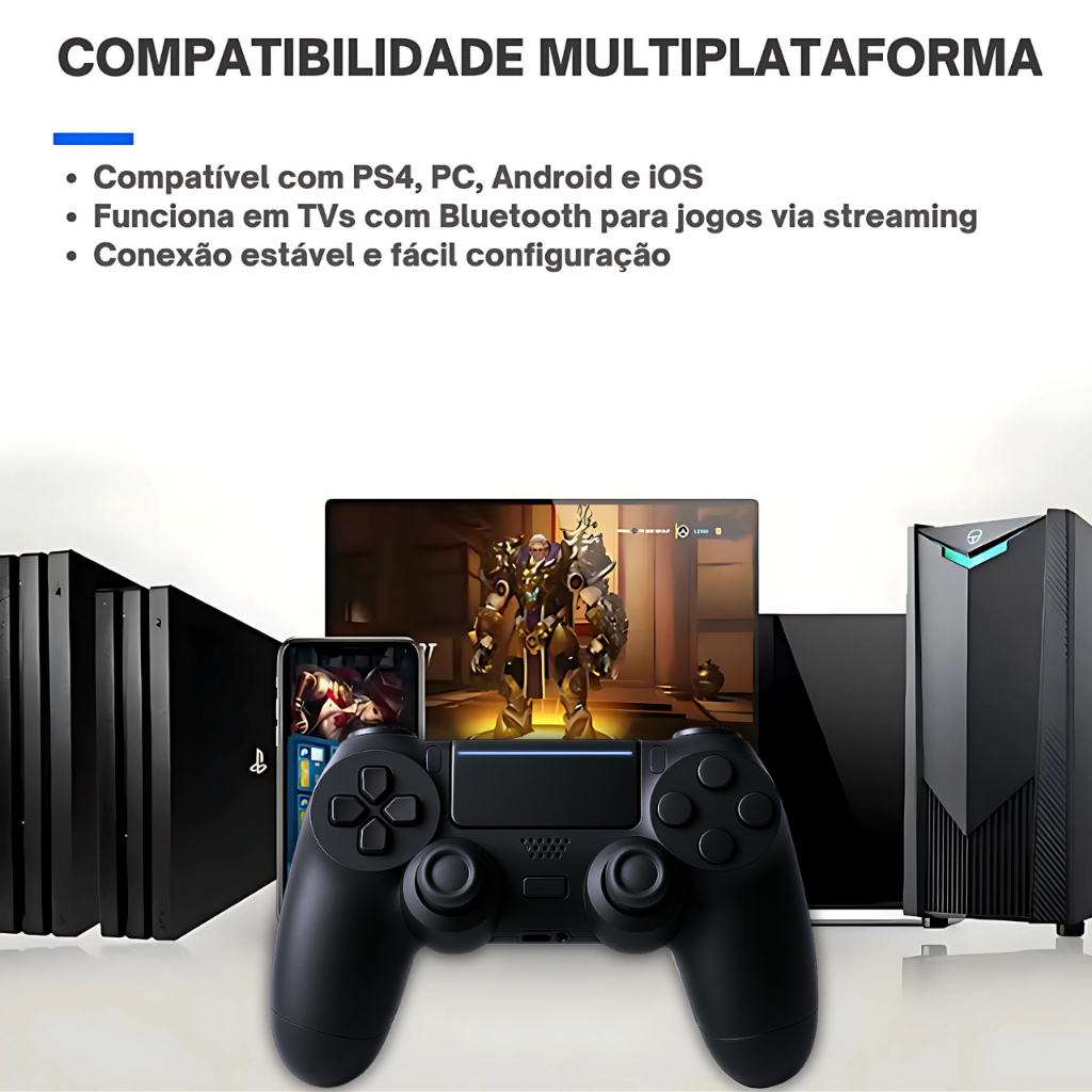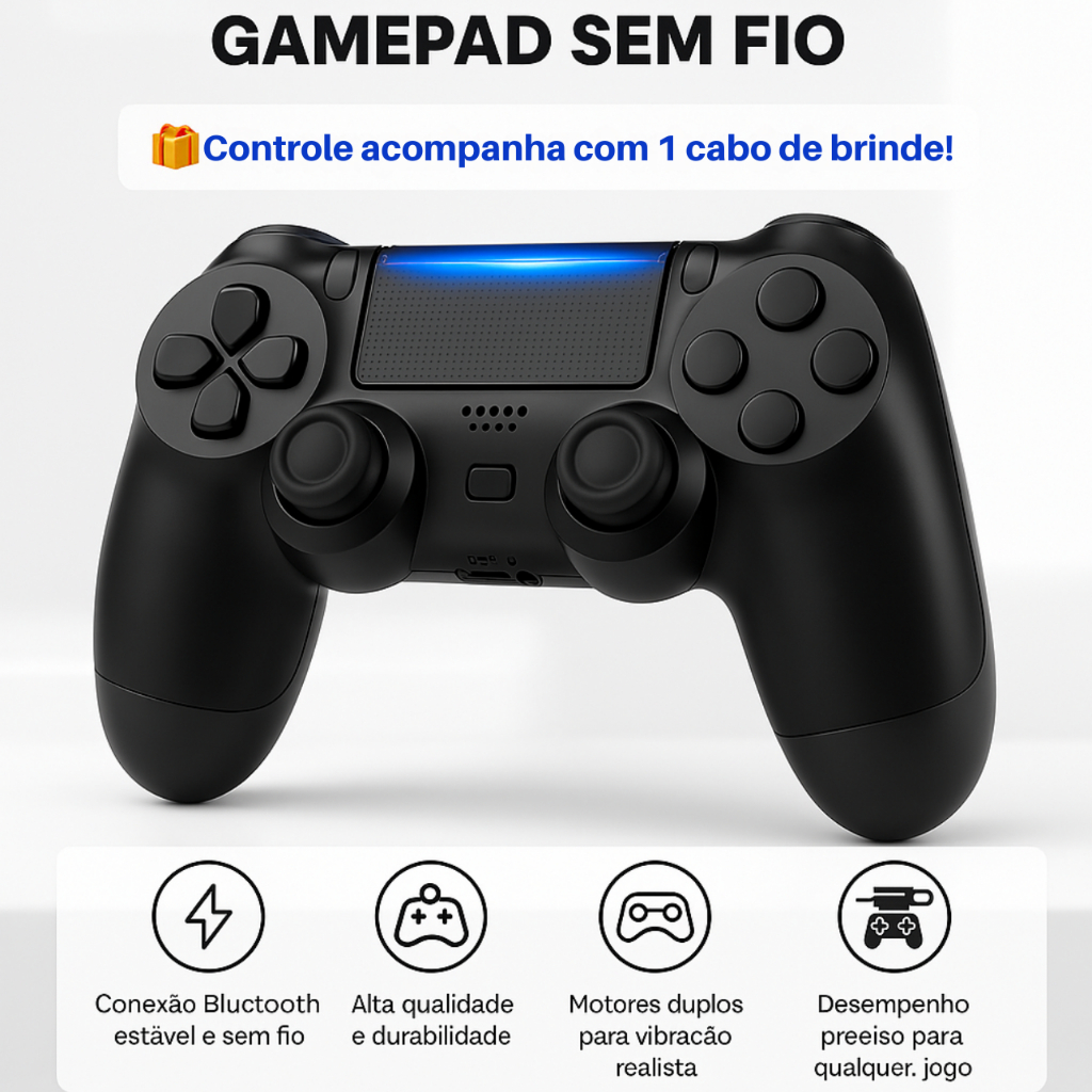 Controle Sem Fio Compatível Ps4 Joystick Recarregavel Manete para PC Gamer e Smart TV Preto