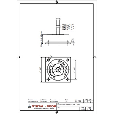 Amortecedor De Vibração Com Chapa 4 Furos Standard 5/8" Fixação
