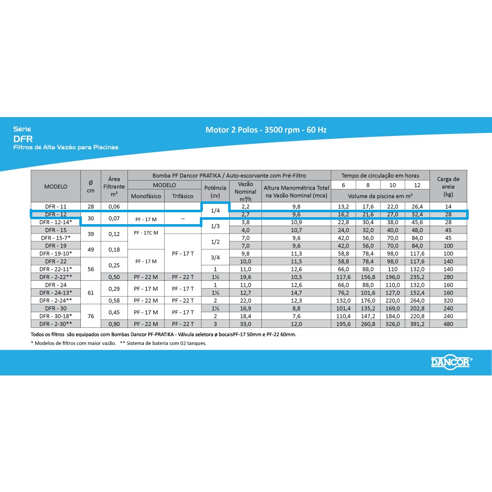 Filtro Dfr12 + Bomba 1/3 Cavalo Dancor Para Piscinas Até 30.000l