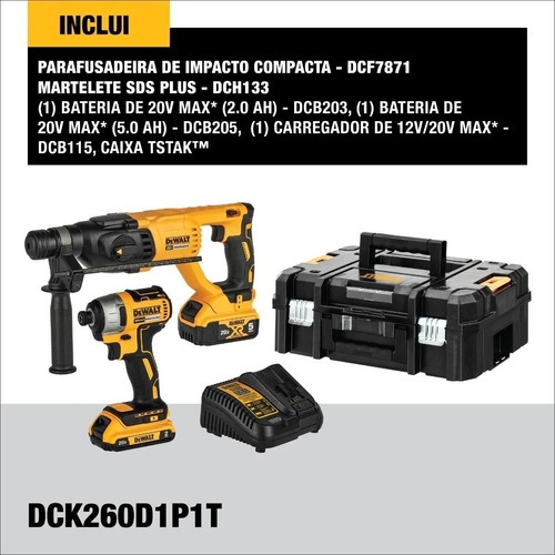 Combo Dewalt Martelete DCH133 + Parafusadeira DCF787 Com 3 Baterias 20V e Carregador Bivolt