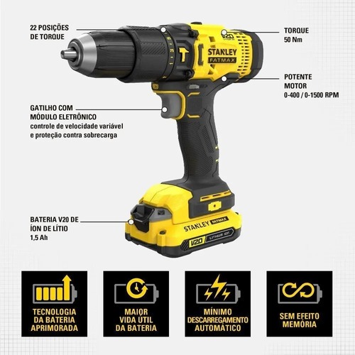 Parafusadeira Furadeira 20v + Bateria Scd711c1k Stanley