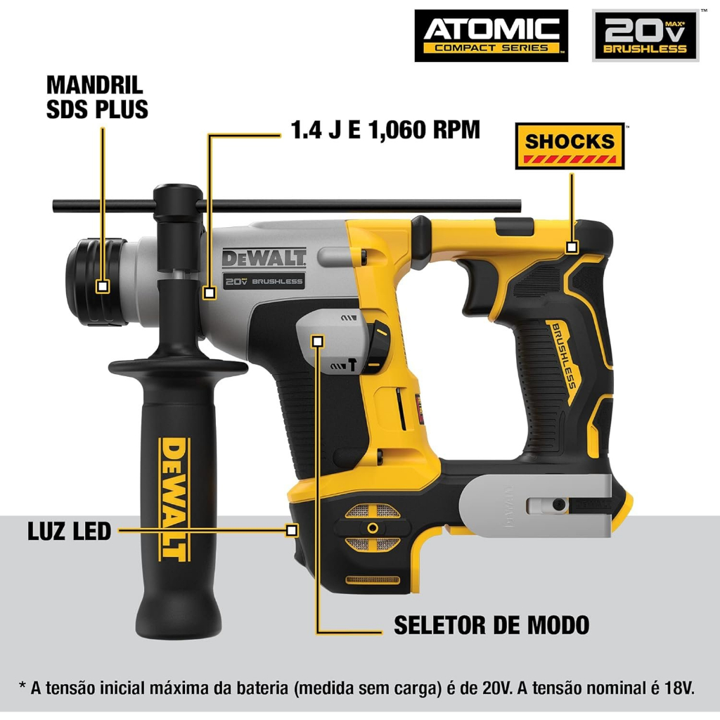 Martelete Dewalt DCH172 20V Brushless com 2 Baterias 4Ah + Maleta (Sem Carregador)