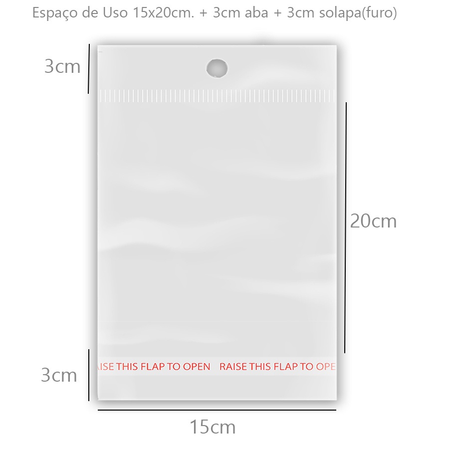 Saco Adesivado 15x20cm com Furo para Pendurar - 100 unidades - Kafe Embalagens