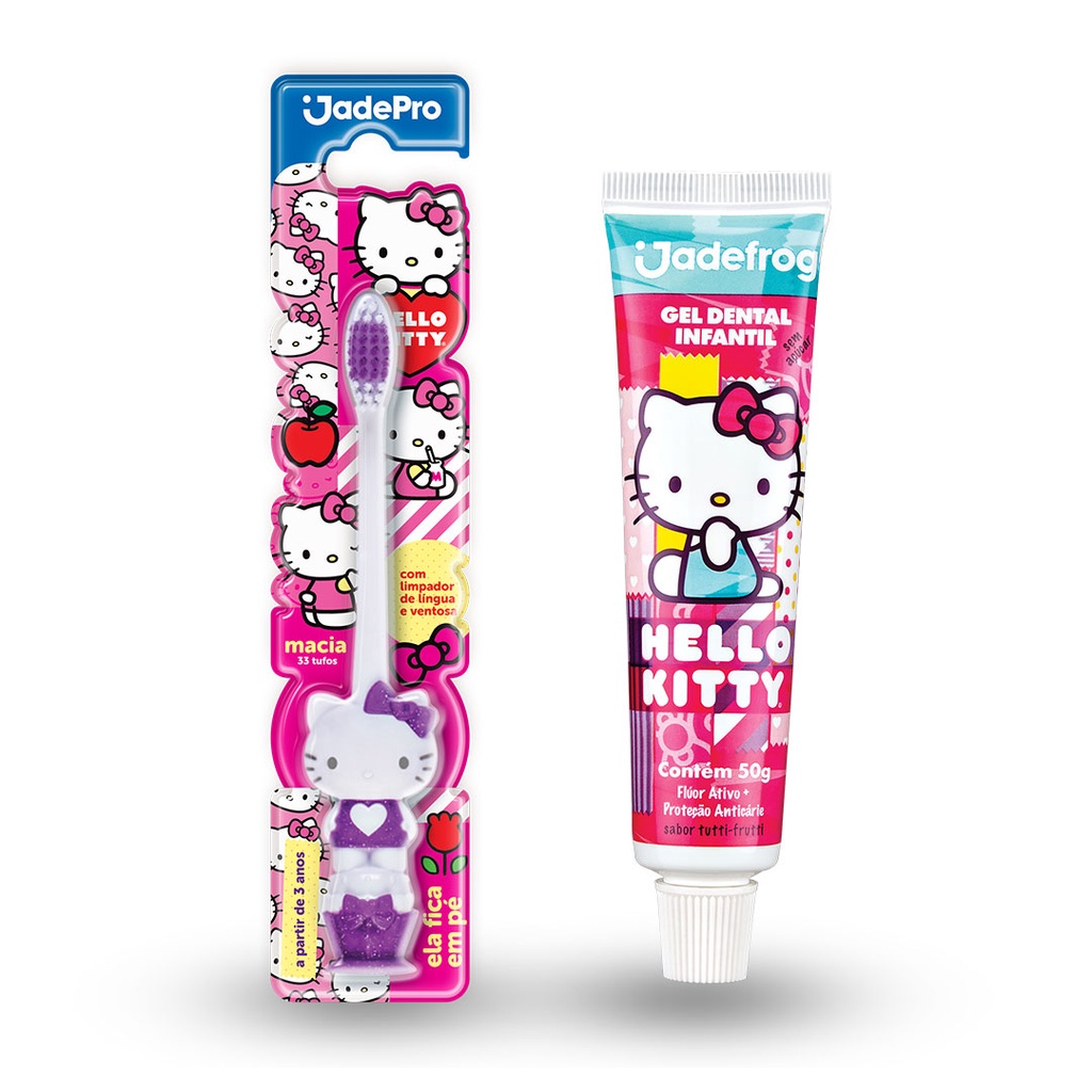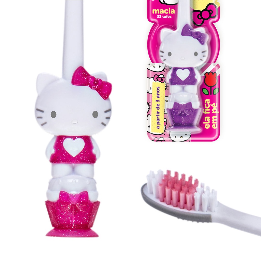 Kit Escova de Dente Infantil Hello Kitty 3D e Gel Dental Hello Kitty 50Gr