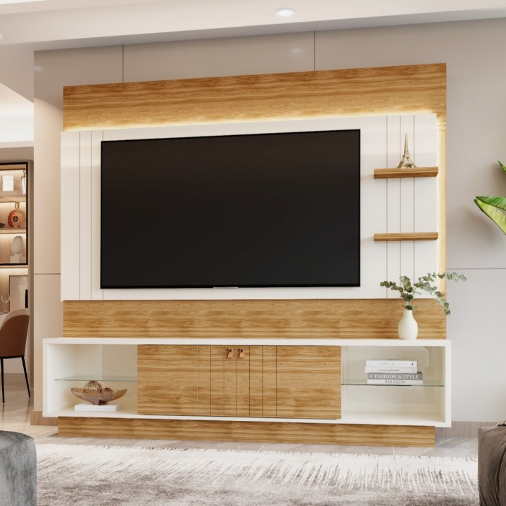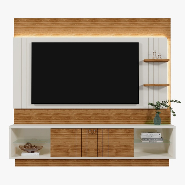 Home Estante P/Tv até 65" polegadas Guararapes Para Sala Retrô 2.00 Cm com Fita De Led Off White/Amendoa- SHARK MOVEIS