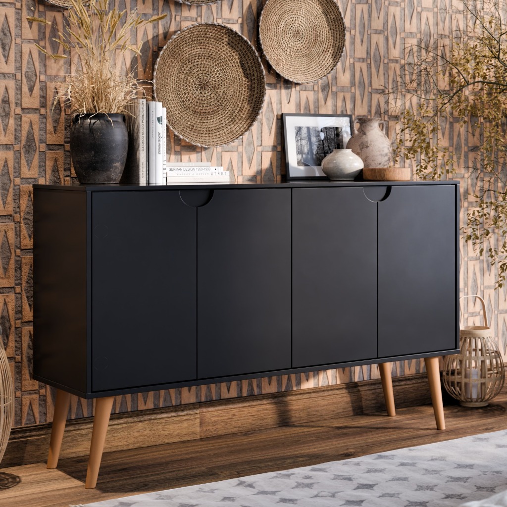 Aparador/Buffet Bar Retrô 4 Portas MAGNUM Cantinho do Café Com Pés em Retrô SHARK MOVEIS