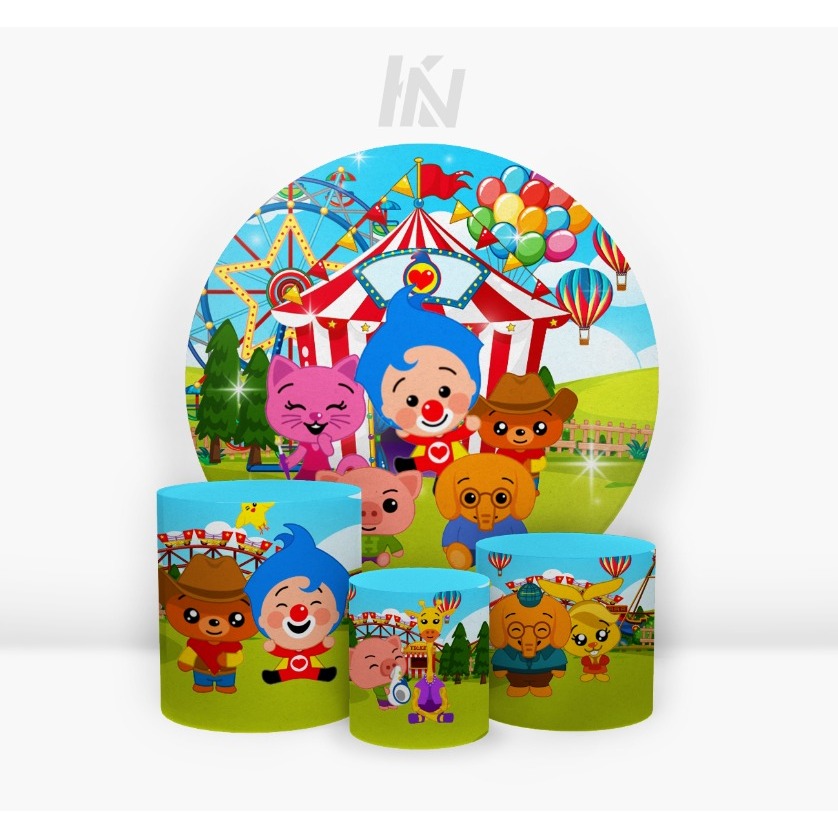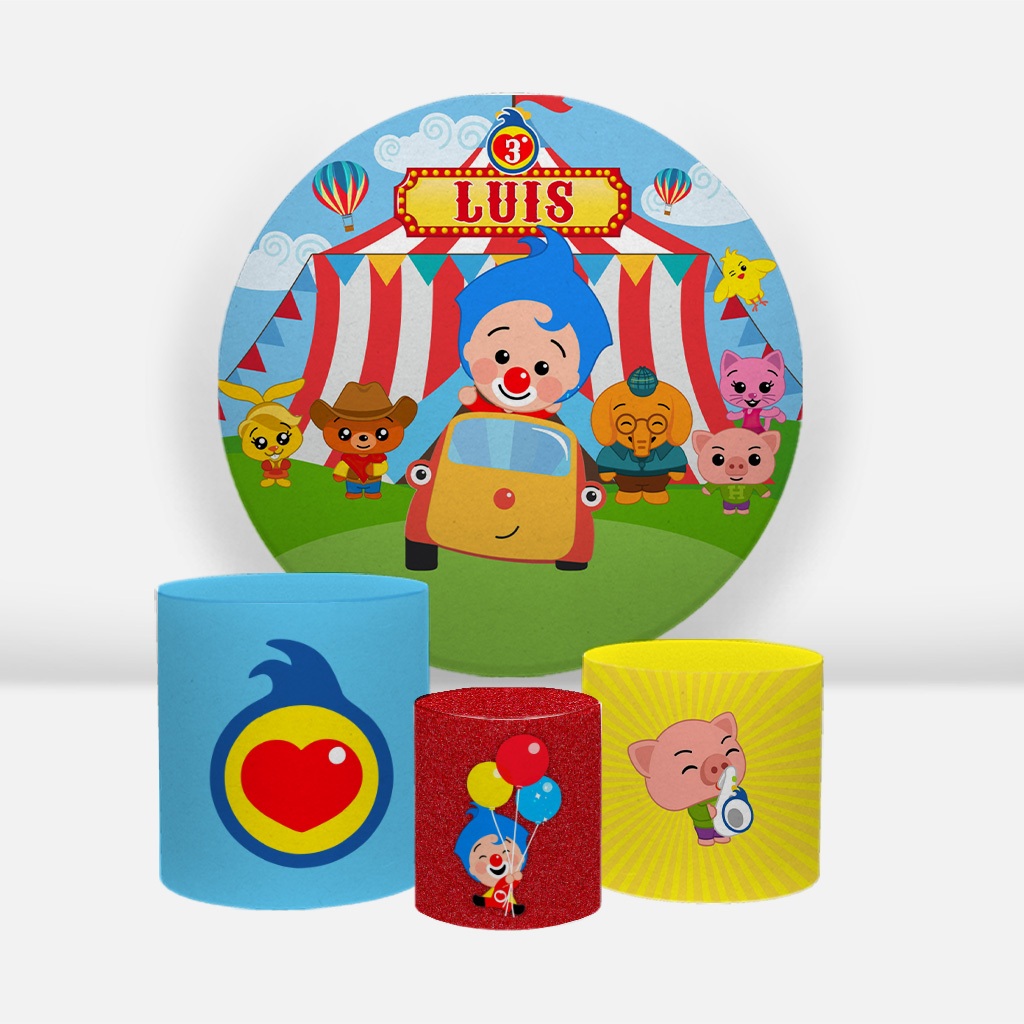 Kit Painel Redondo com Trio Capas De Cilindros 1,50x1,50 Palhaço Plim Plim