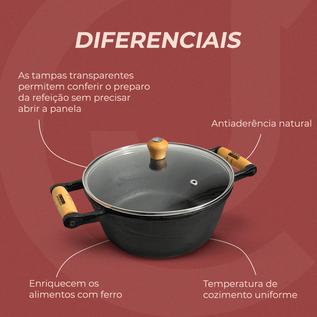 Panela De Ferro Fundido Caçarola 14cm Com Tampa De Vidro