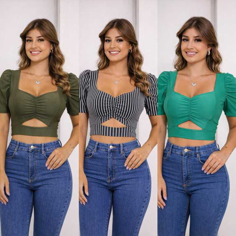 Cropped Feminino Suplex com Manga Princesa Bufante com Bojo *CROPPED BURACO