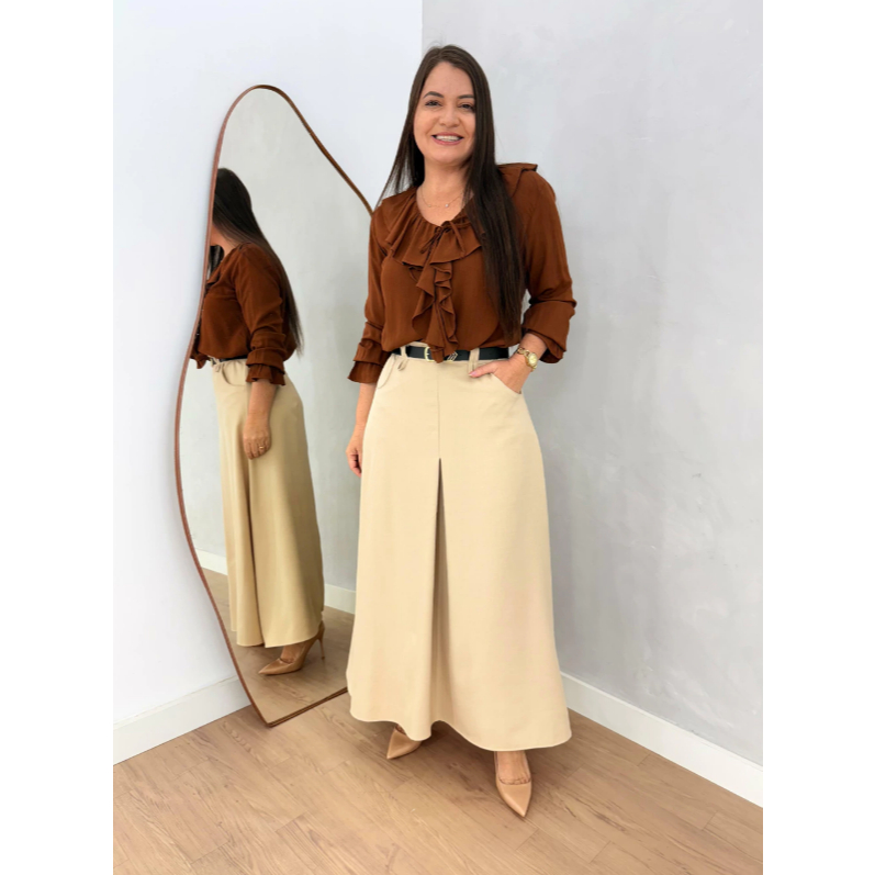 Saia alfaiataria com bols Modelo fenda fechada frente