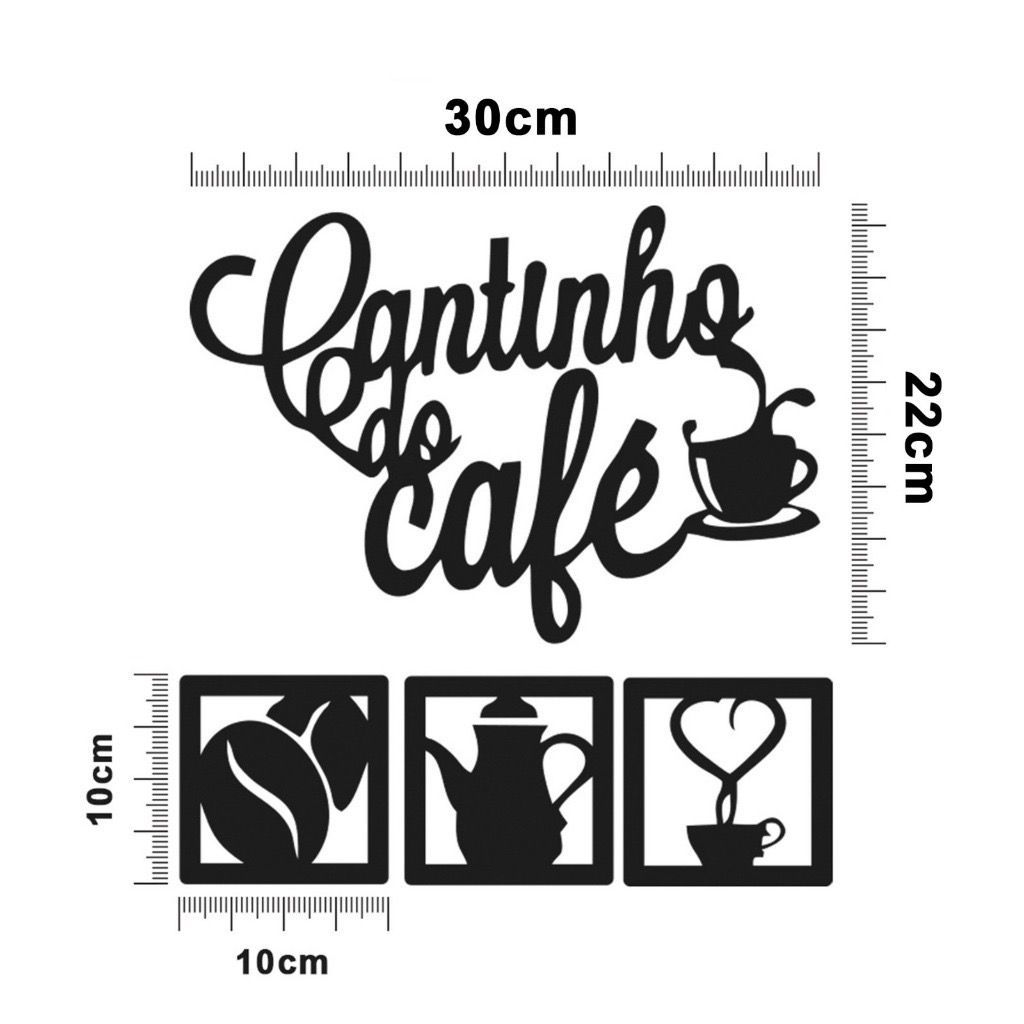 Kit Cantinho do Café Bandeja Grande + Placa Decorativa Em MDF Preta Diversos Ambientes