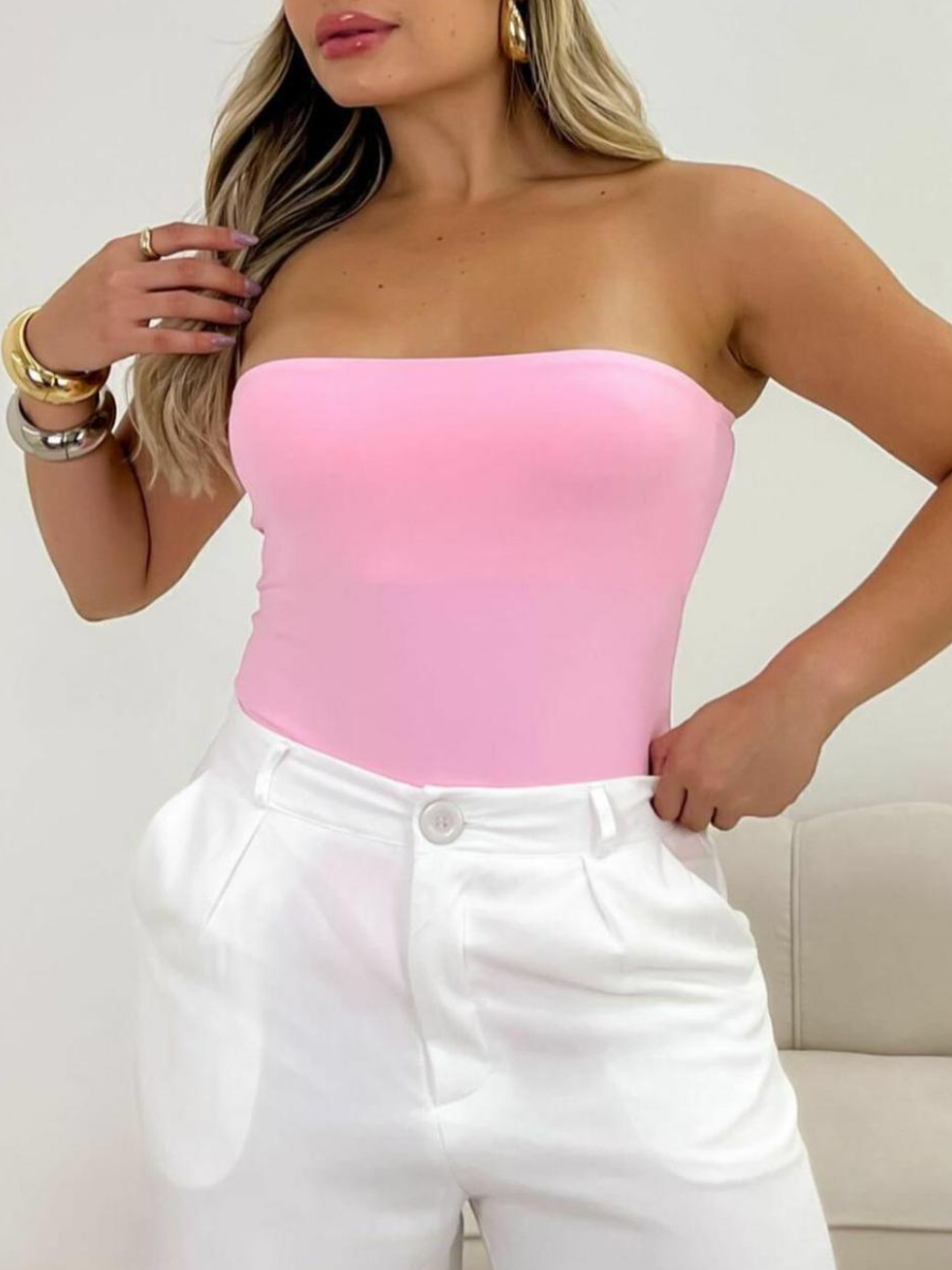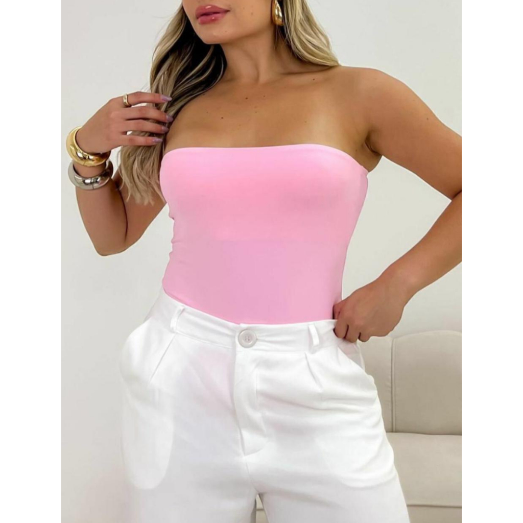 Tube Top Cropped Tomara que Caia Básico Feminino Tubinho Duplo Sem Bojo