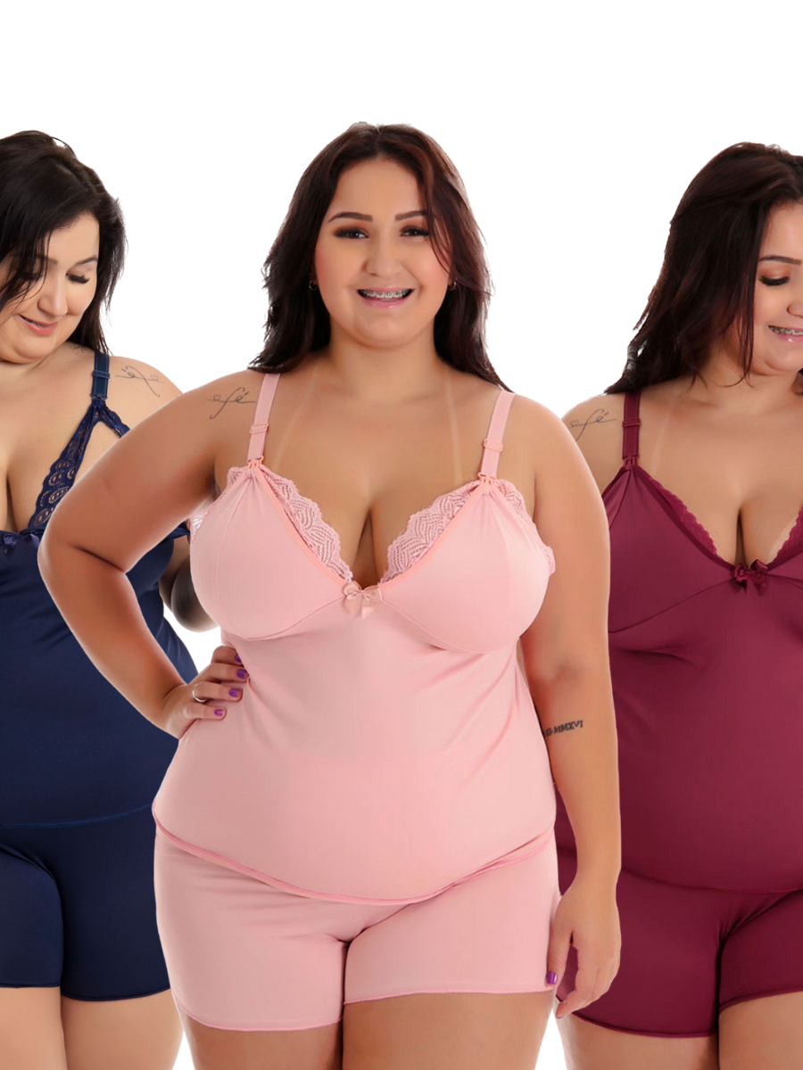 Kit 3 Baby Doll Amamentação Plus size Pós Parto Gestante - Cores Sortidas