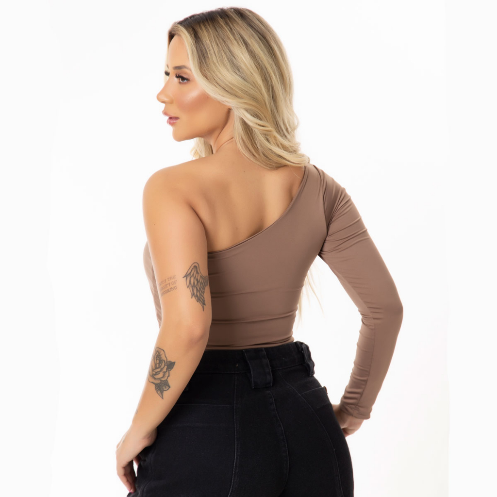 Kit 2 Blusa Cropped Lisa Um Ombro Só Manga Longa