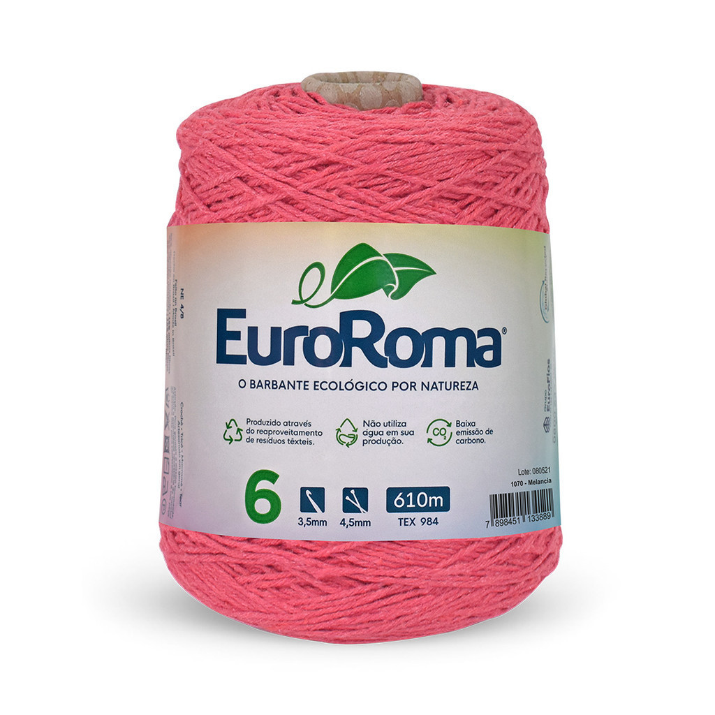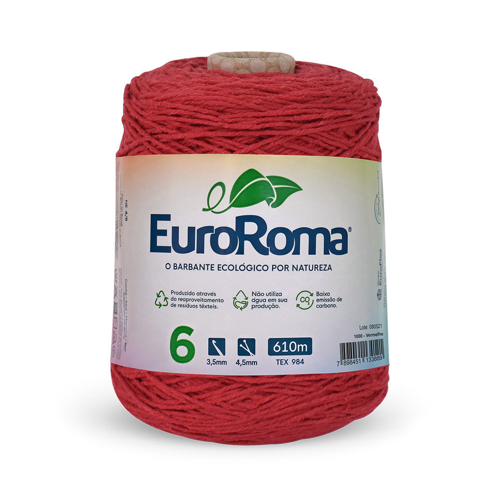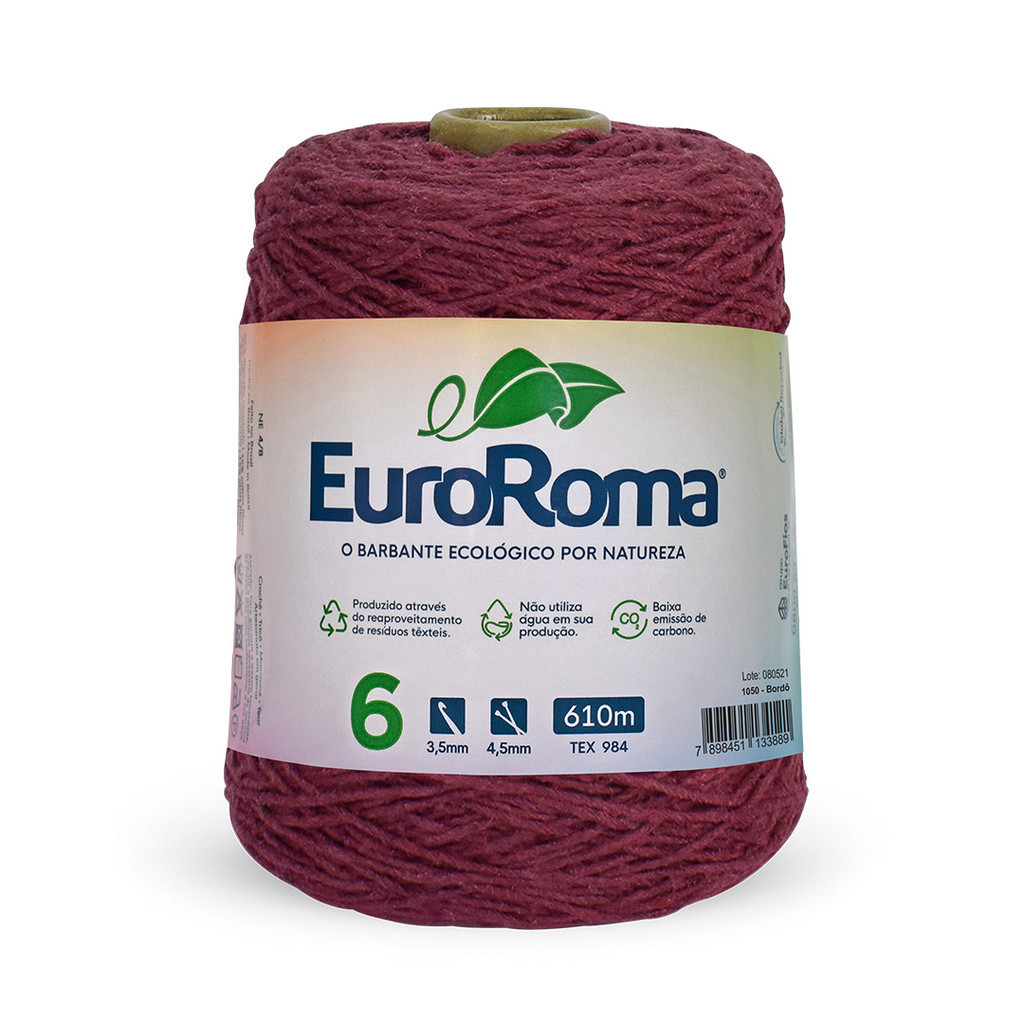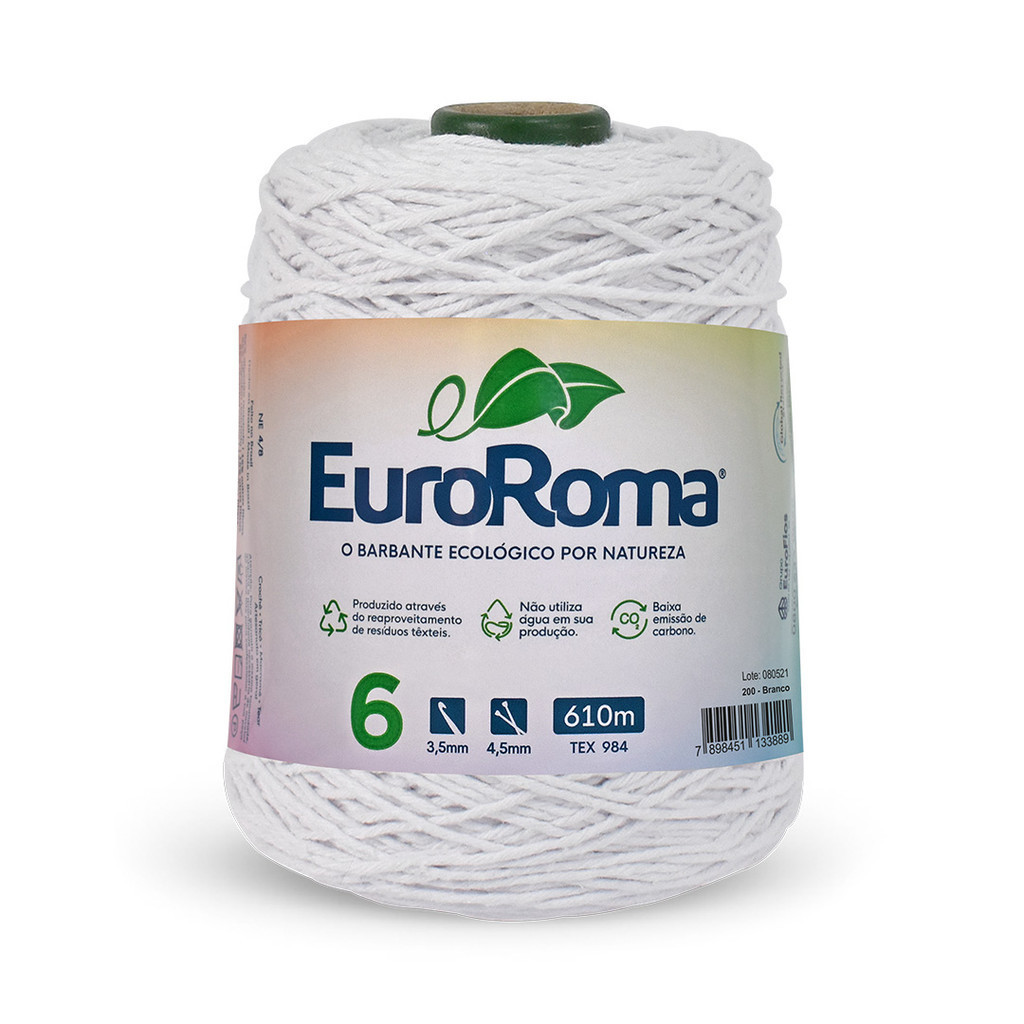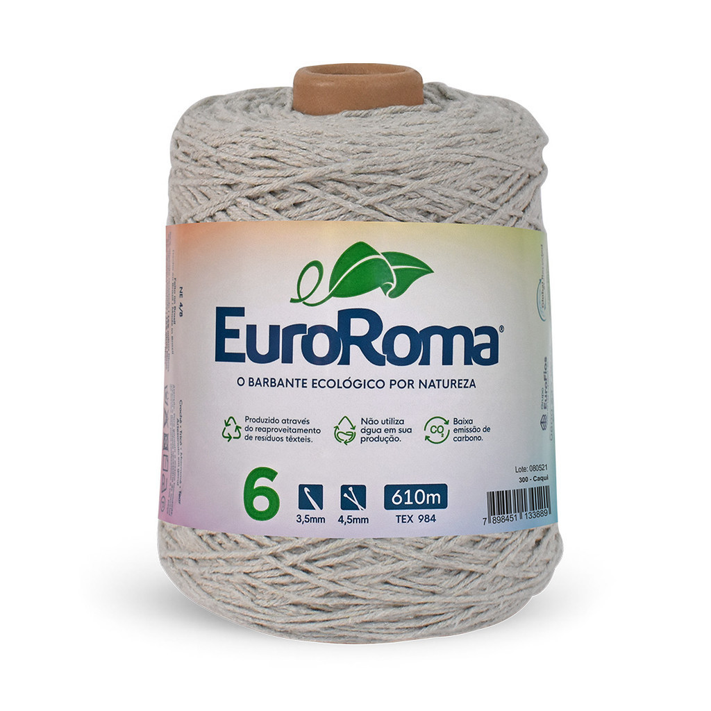 Barbante EuroRoma Nº 6 | 610m | Ecológico 85% Algodão Reciclado | Artesanato Sustentável
