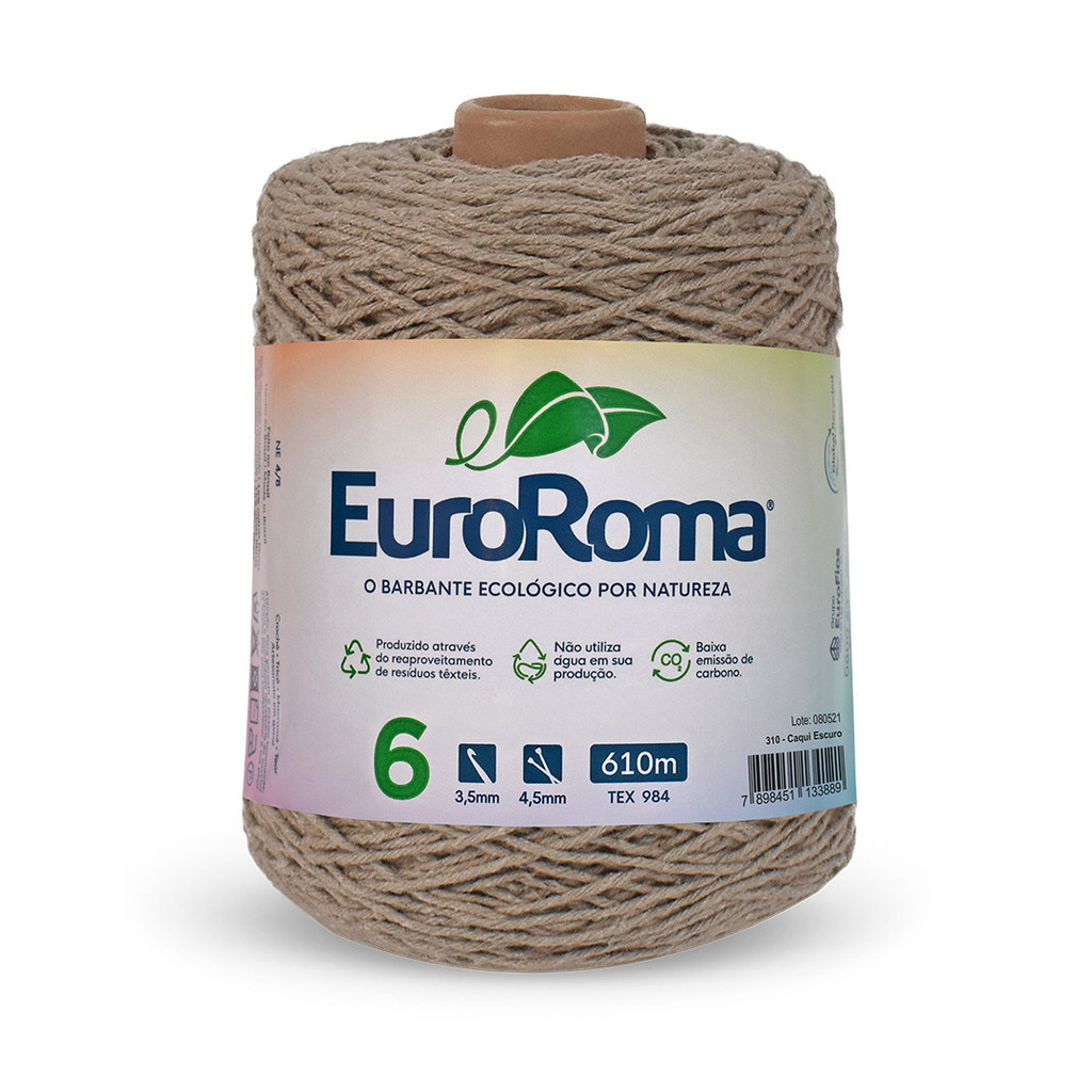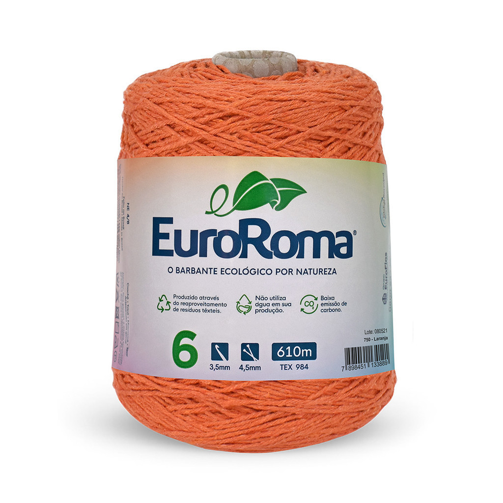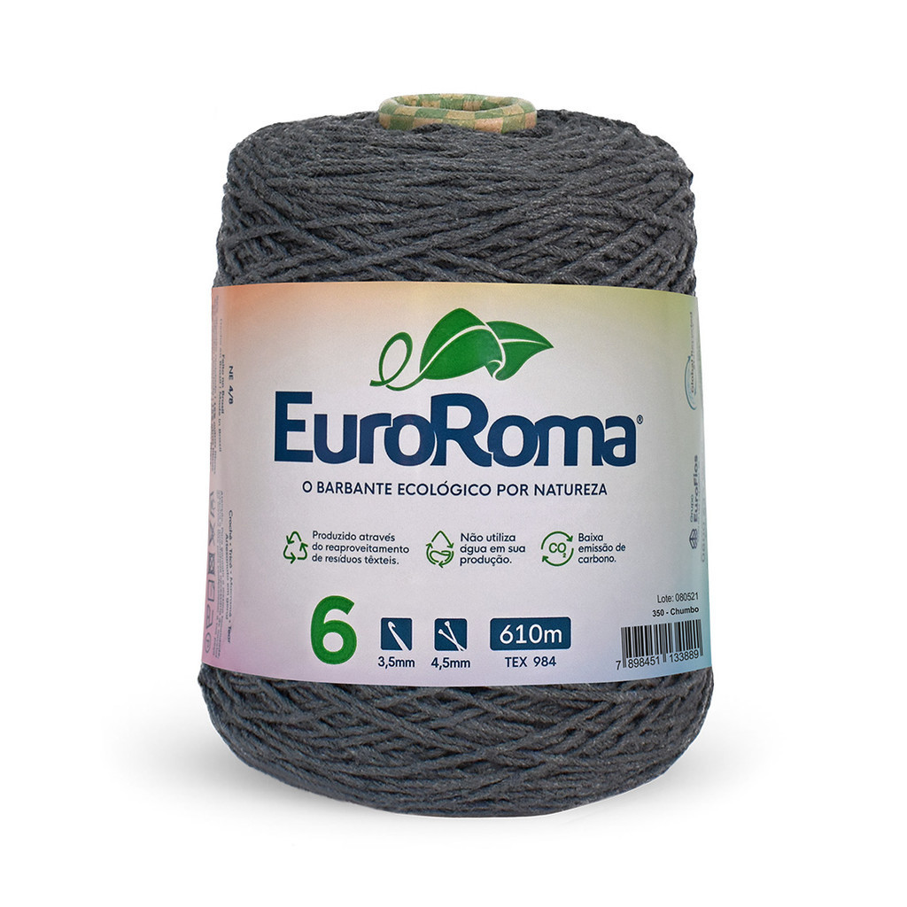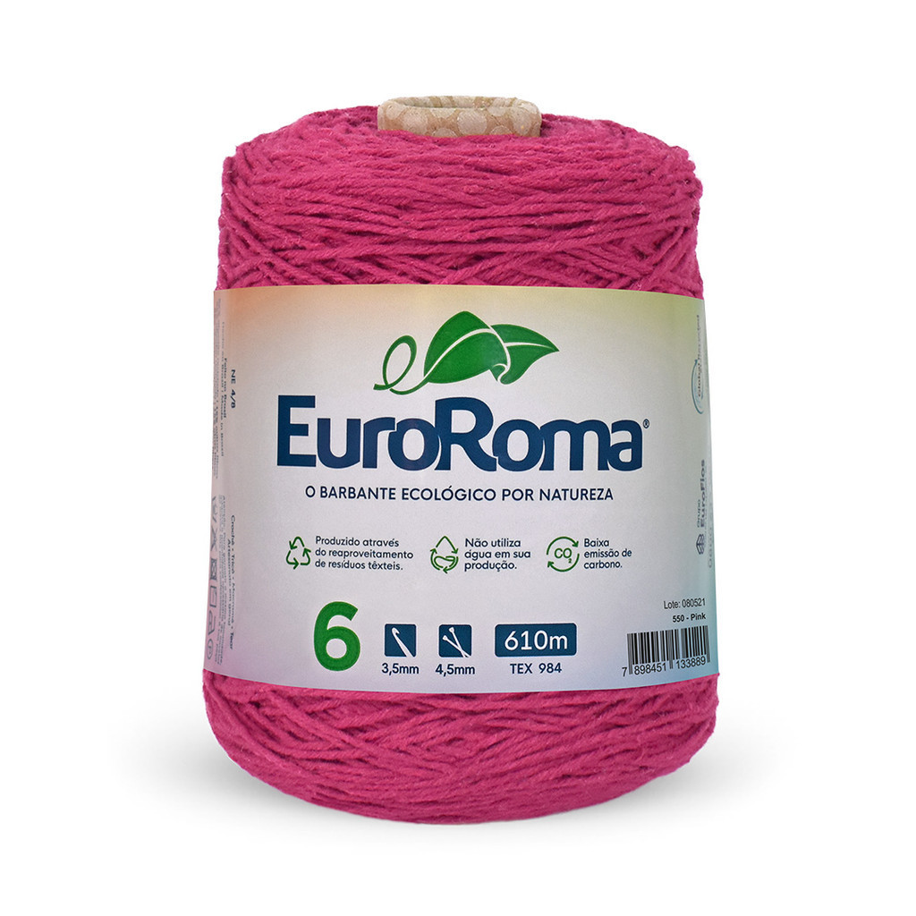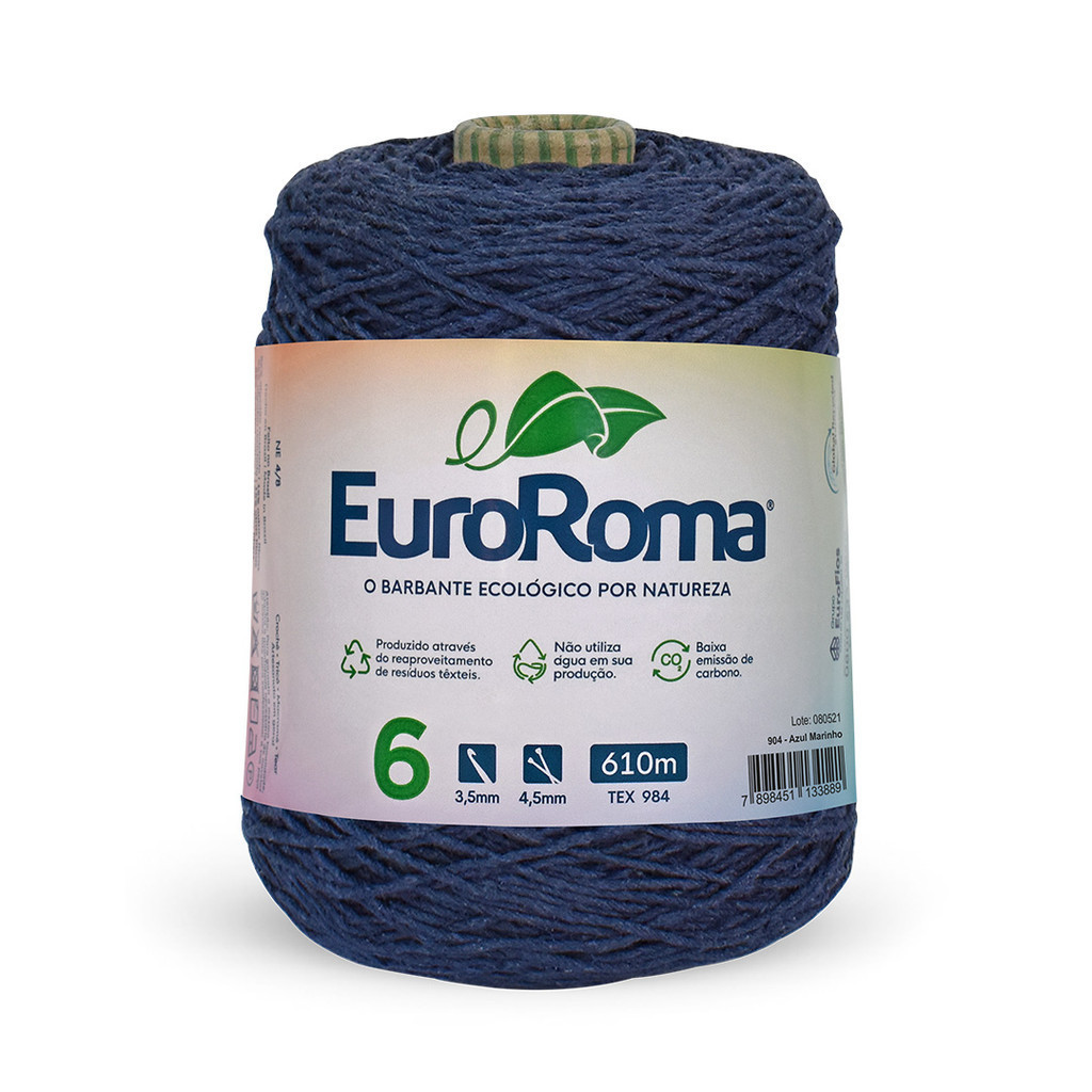 Barbante EuroRoma Nº 6 | 610m | Ecológico 85% Algodão Reciclado | Artesanato Sustentável