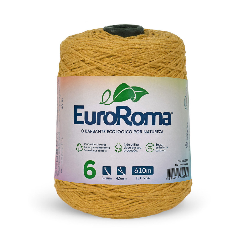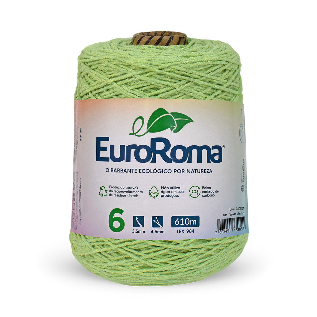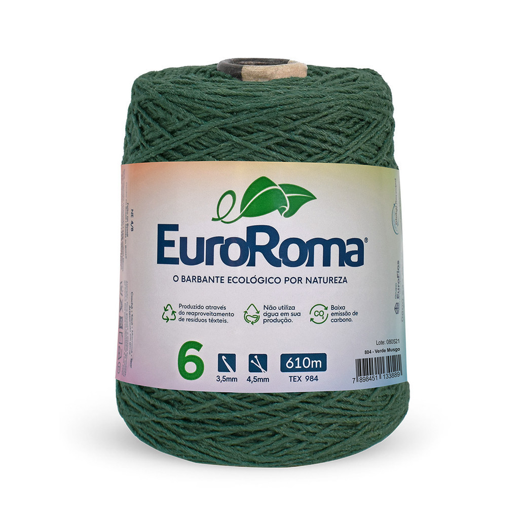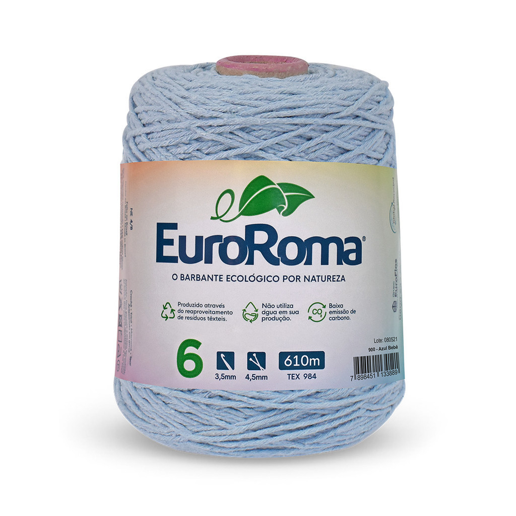 Barbante EuroRoma Nº 6 | 610m | Ecológico 85% Algodão Reciclado | Artesanato Sustentável