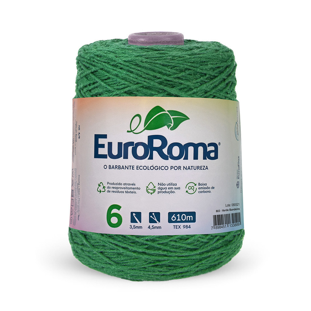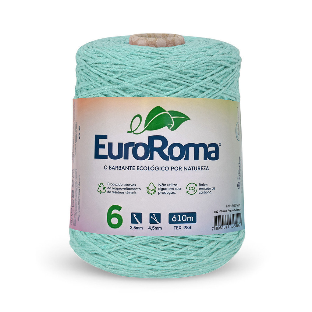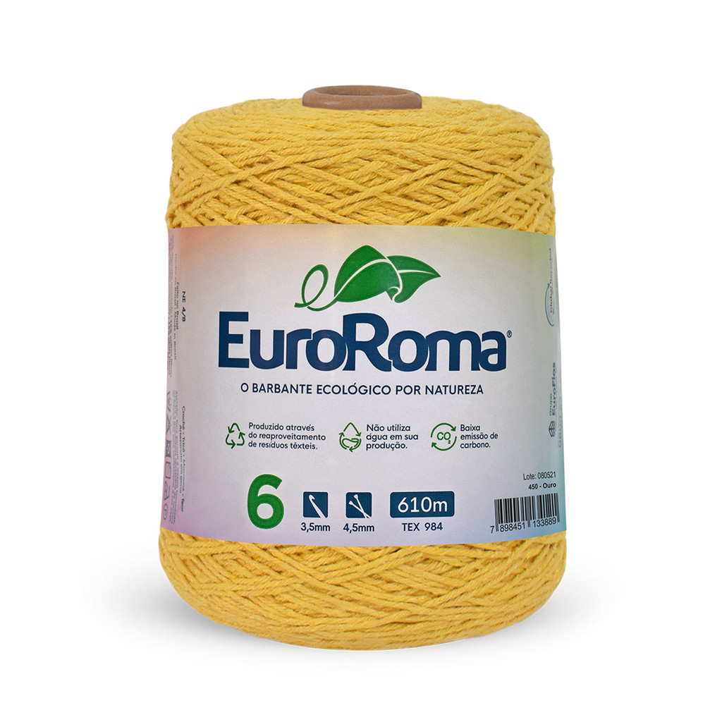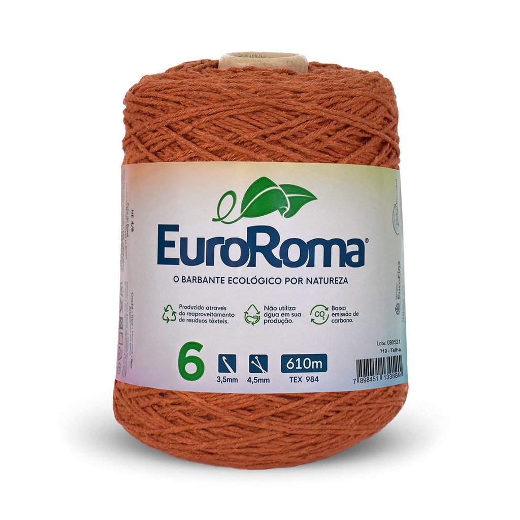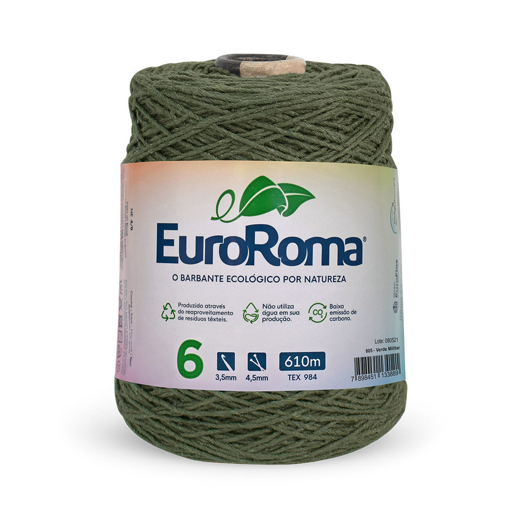 Barbante EuroRoma Nº 6 | 610m | Ecológico 85% Algodão Reciclado | Artesanato Sustentável