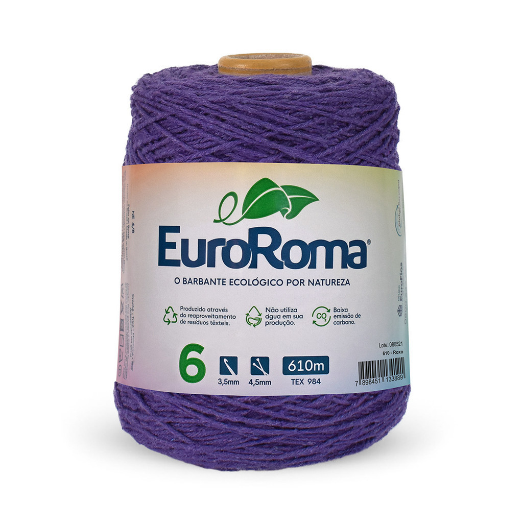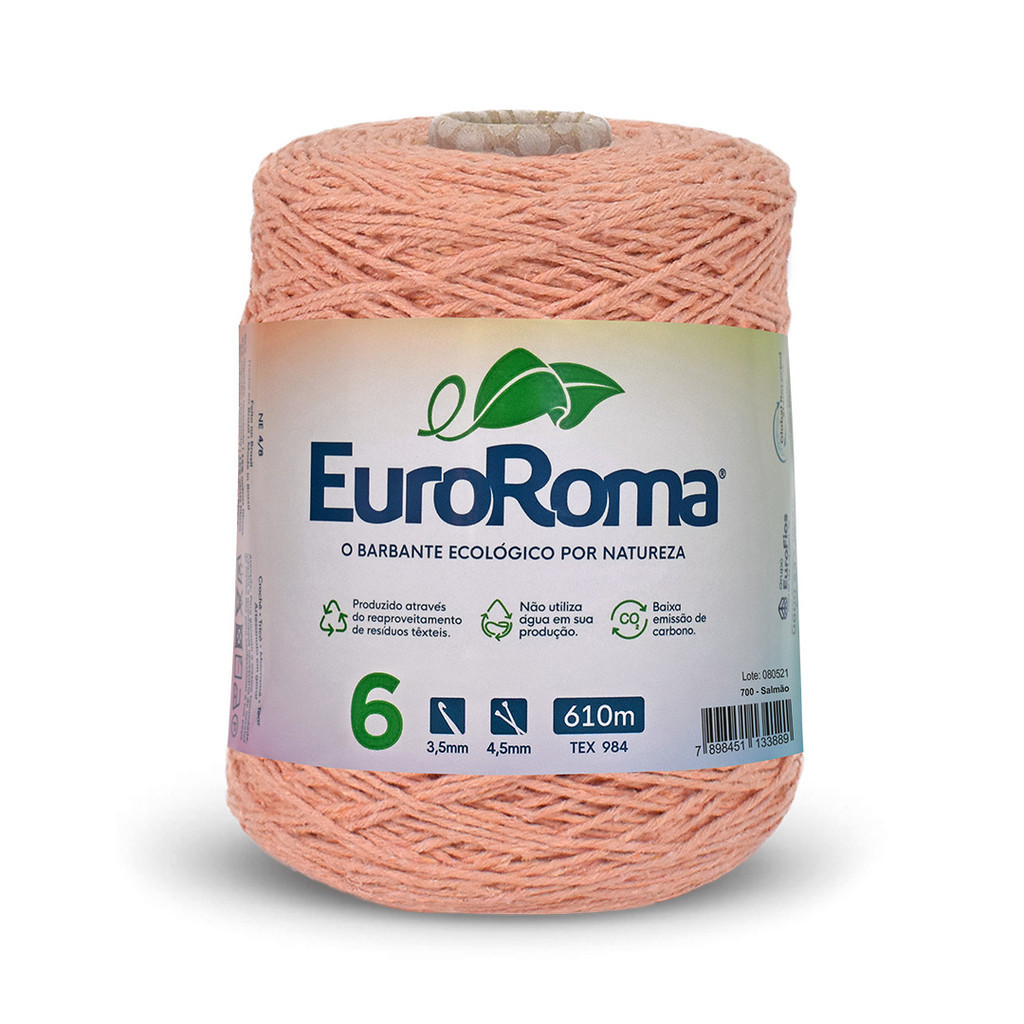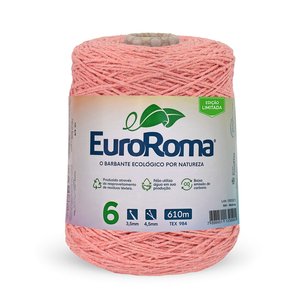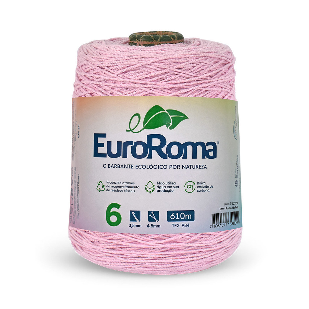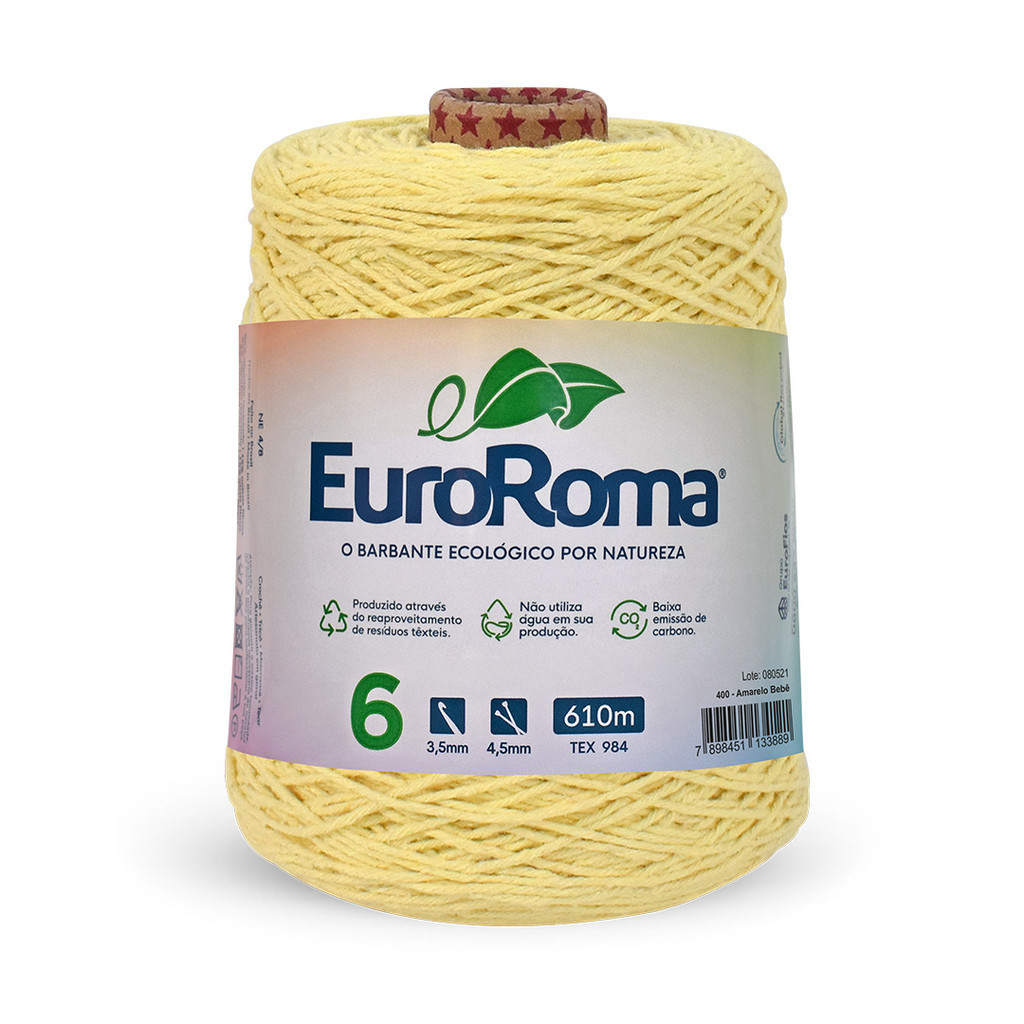 Barbante EuroRoma Nº 6 | 610m | Ecológico 85% Algodão Reciclado | Artesanato Sustentável