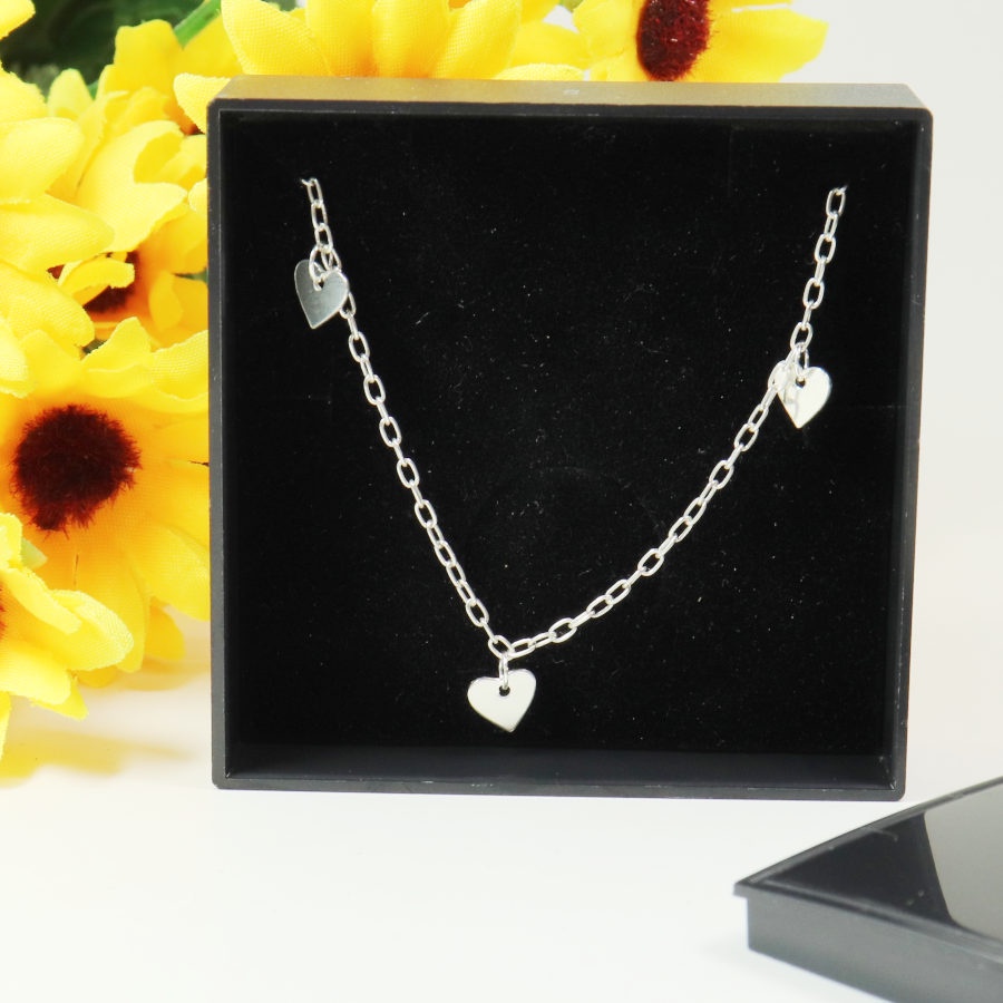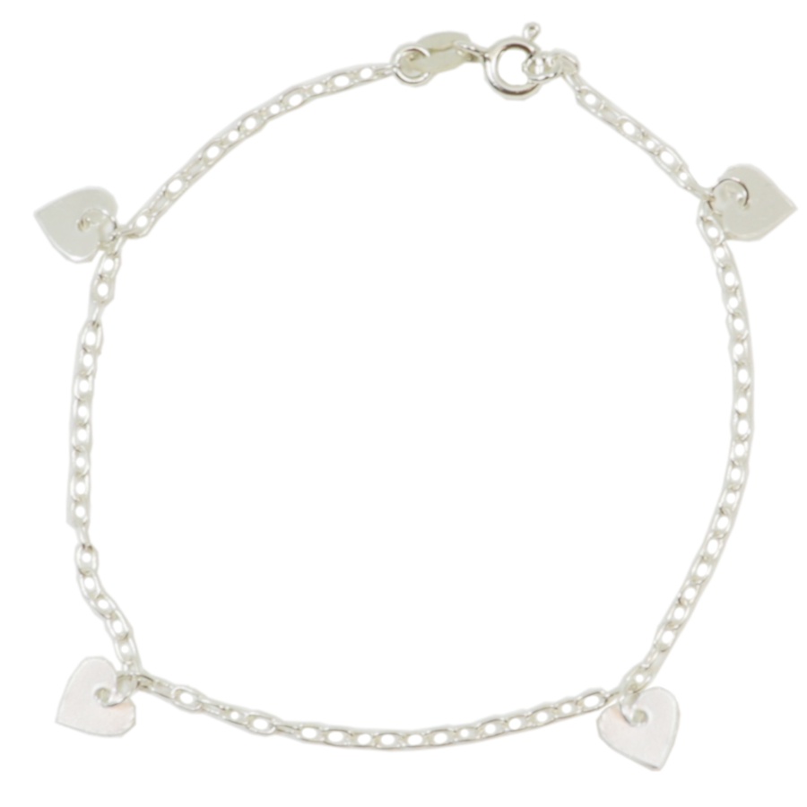 Pulseira Prata Maciça 925 Coração 18cm Com Pingente