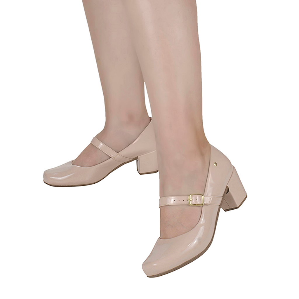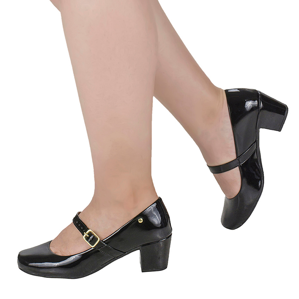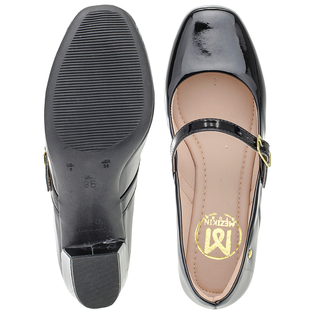 Kit Dois Pares Sapatos Boneca Preto Nude Fechado Delicado Salto Médio Confortavel Mezikin