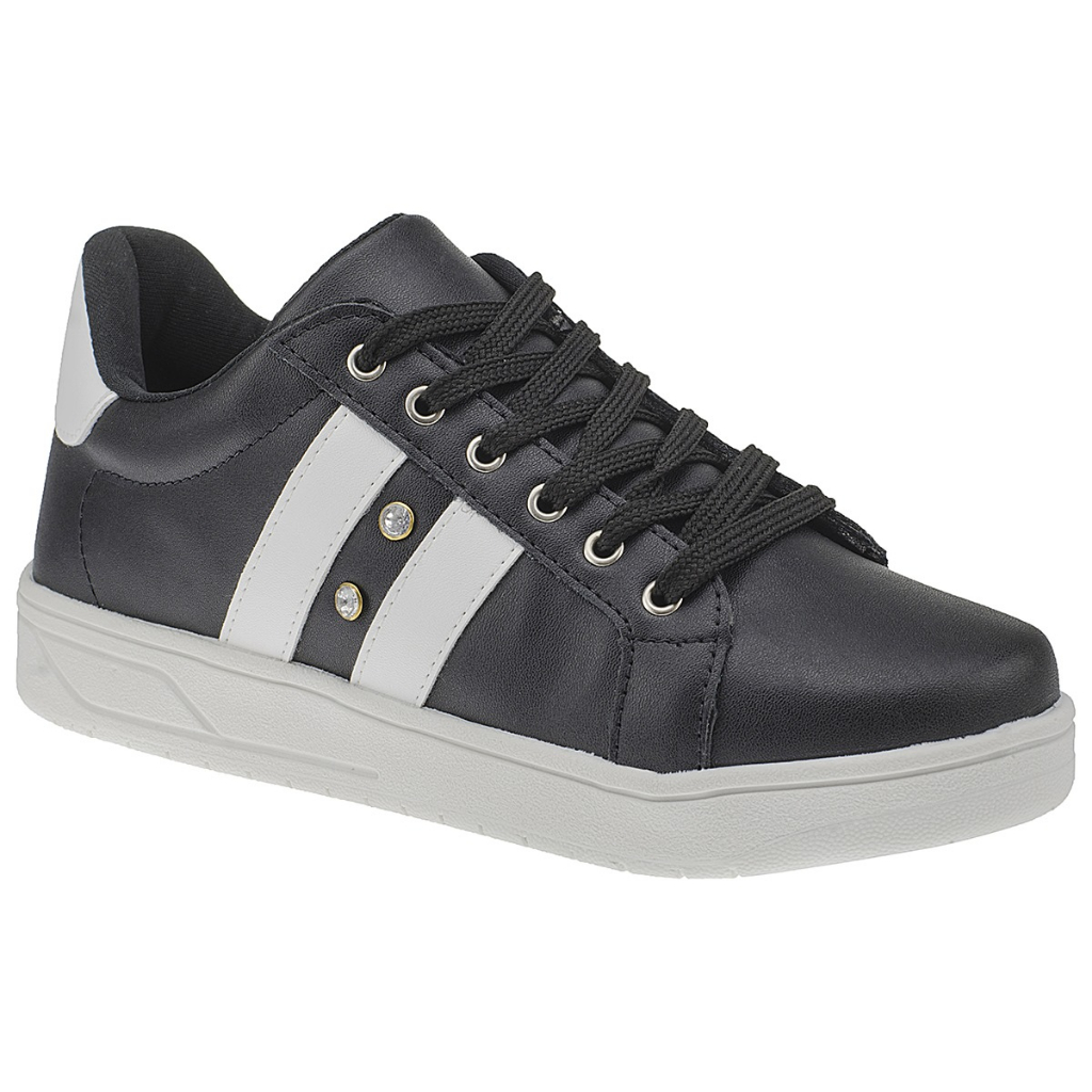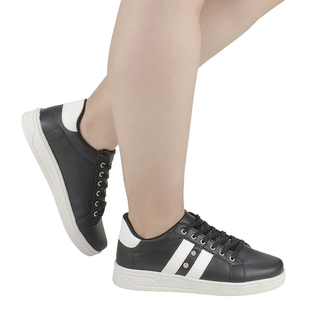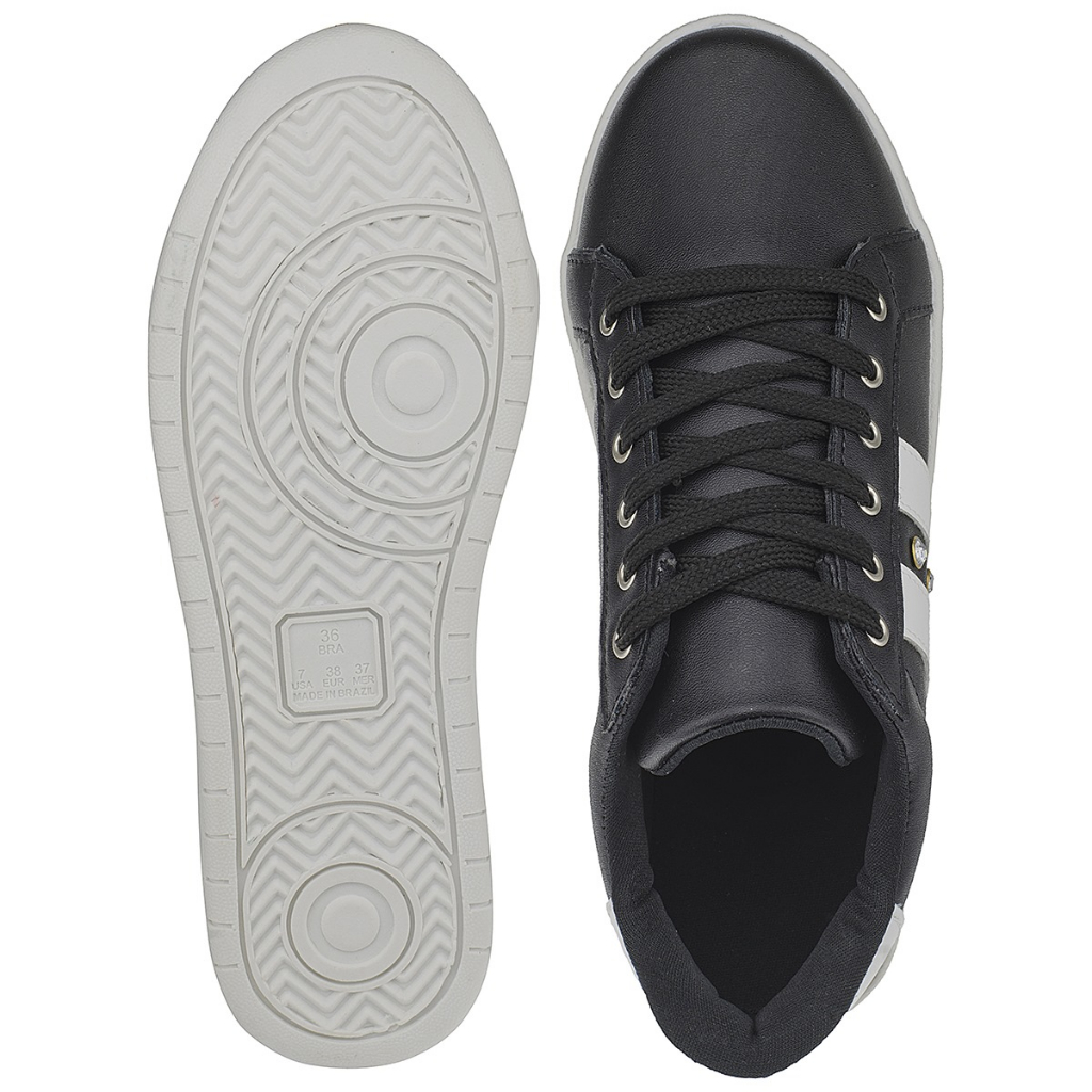 Tênis Casual Preto Listra Branca Moderno Unissex Tradicional