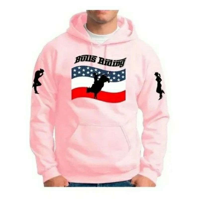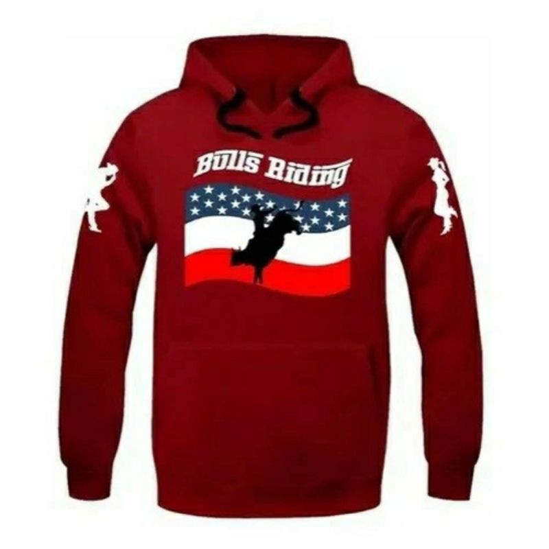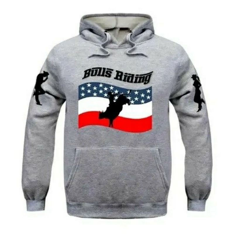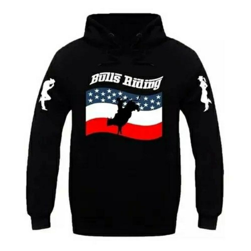 Blusa Moletom Canguru Com Capuz&Bolso Bulls Riding Rodeio. casaco agasalho country frio inverno