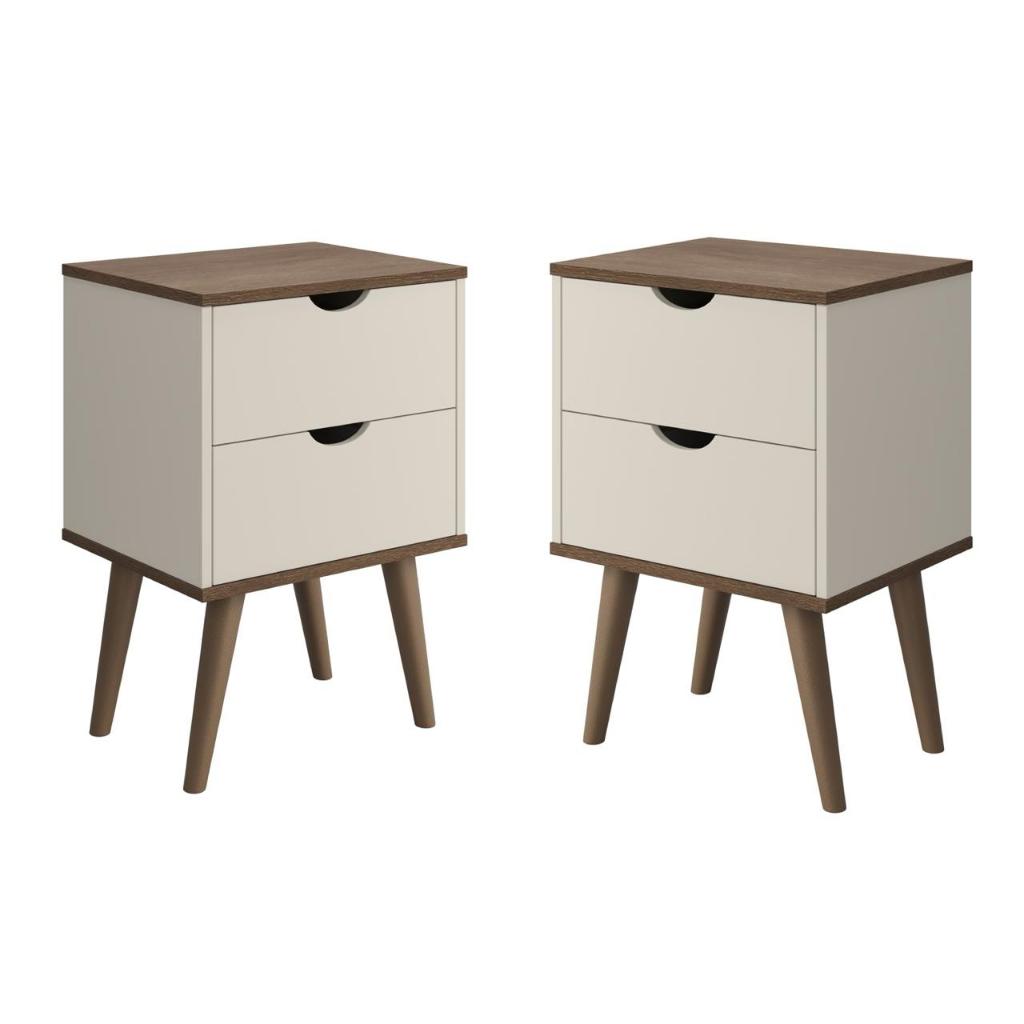 Conjunto 2 Mesa De Cabeceira Madri Pés Palito Retro 2 Gaveta- OFF WHITE/CANELA
