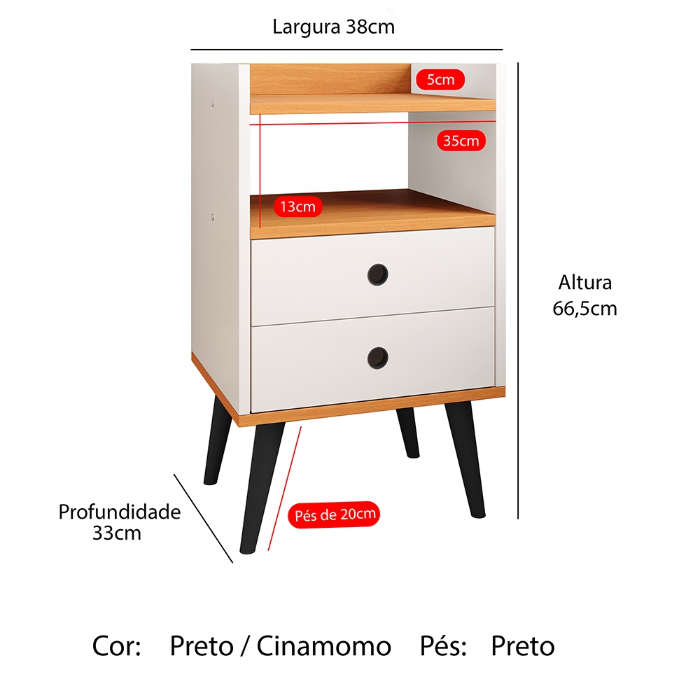 Mesa de Cabeceira Moderna 2 Gavetas e Nicho Quarto Dream