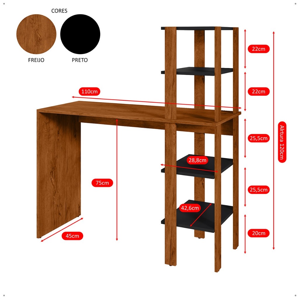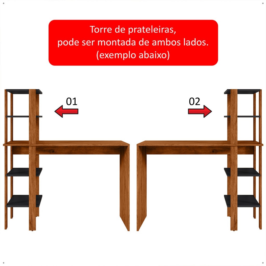 Escrivaninha Mesa Com Prateleiras Reversível Office Escritório Estudos Zorzi