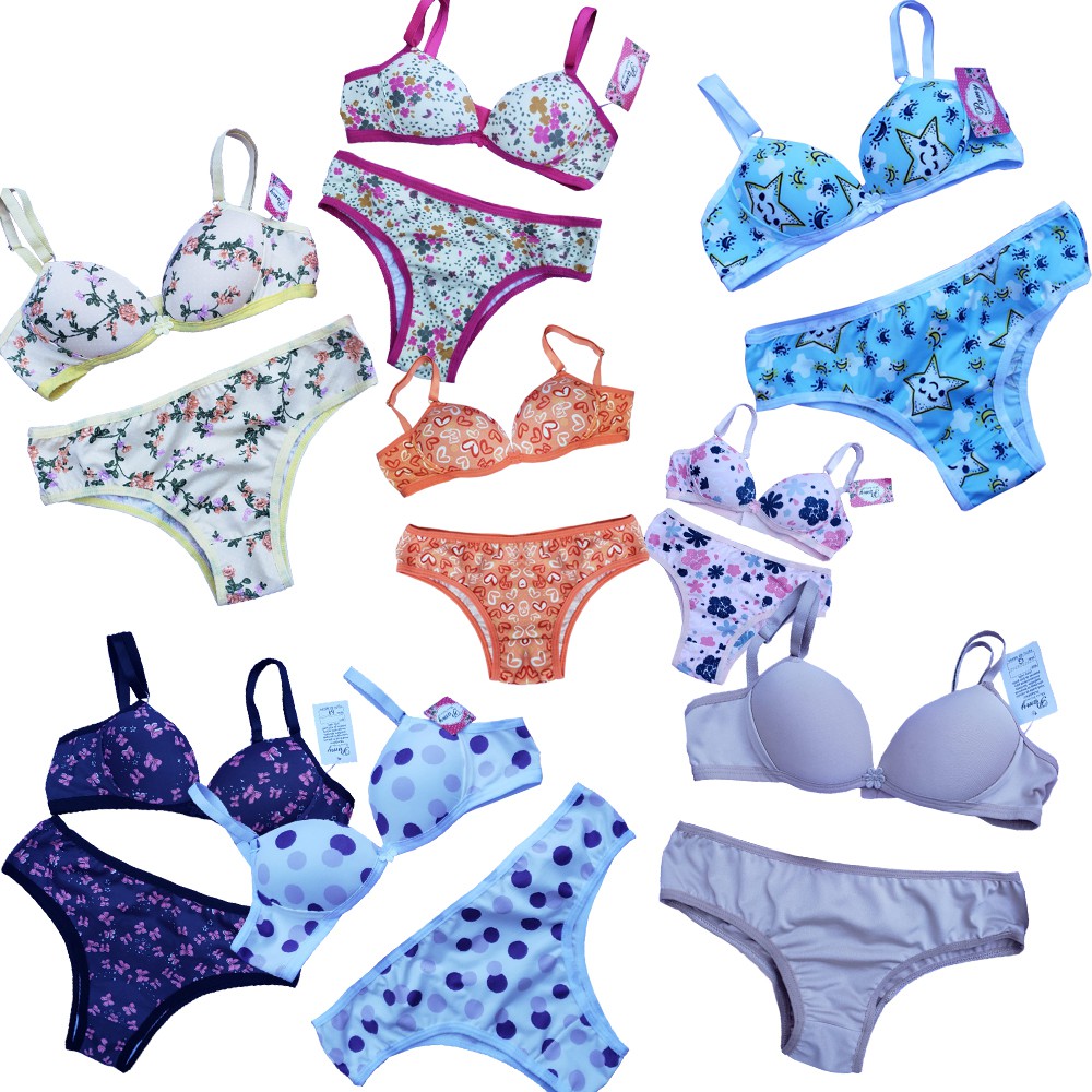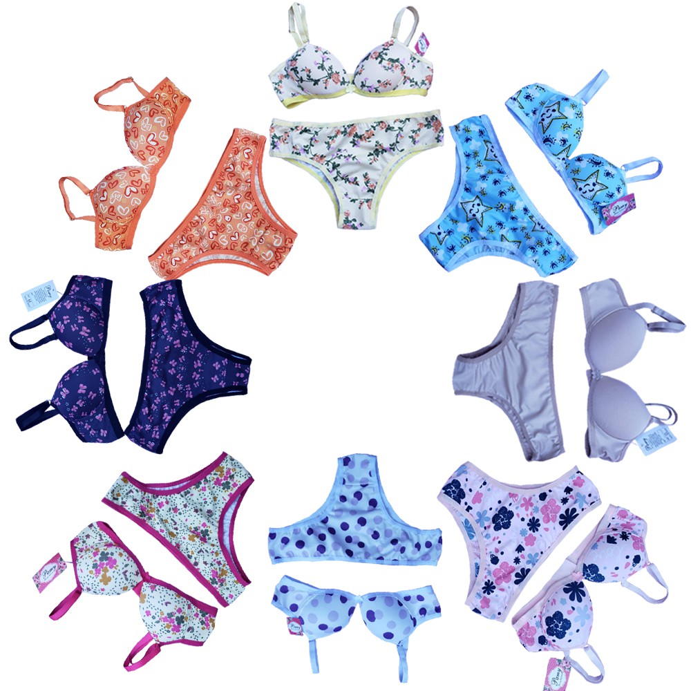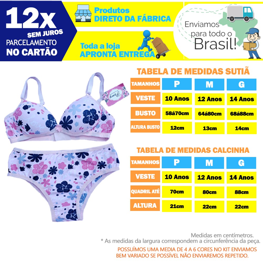 Kit 3 conjunto menina moça com bojo lingerie infantil