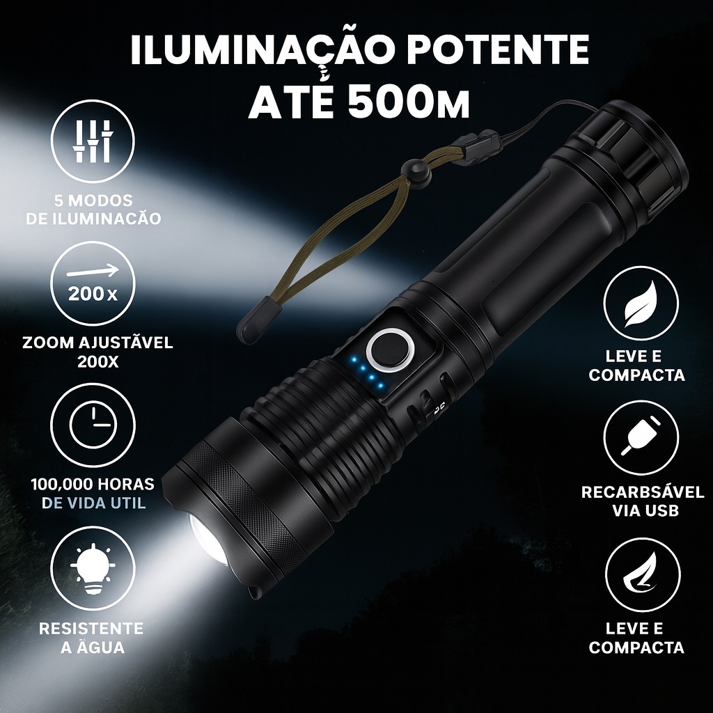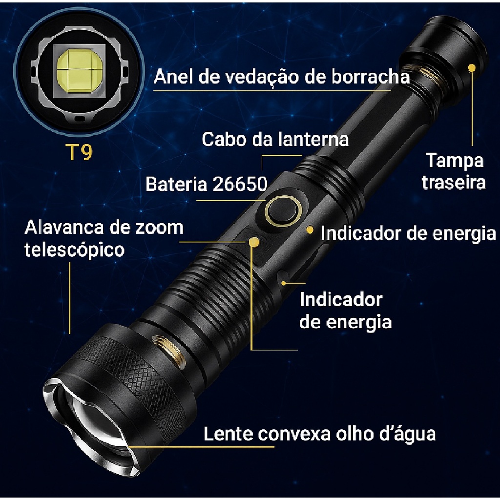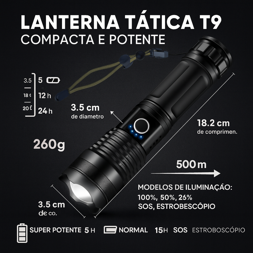 Lanterna Tática T9 /P90 Ultra Potente - Mais Forte do Mercado