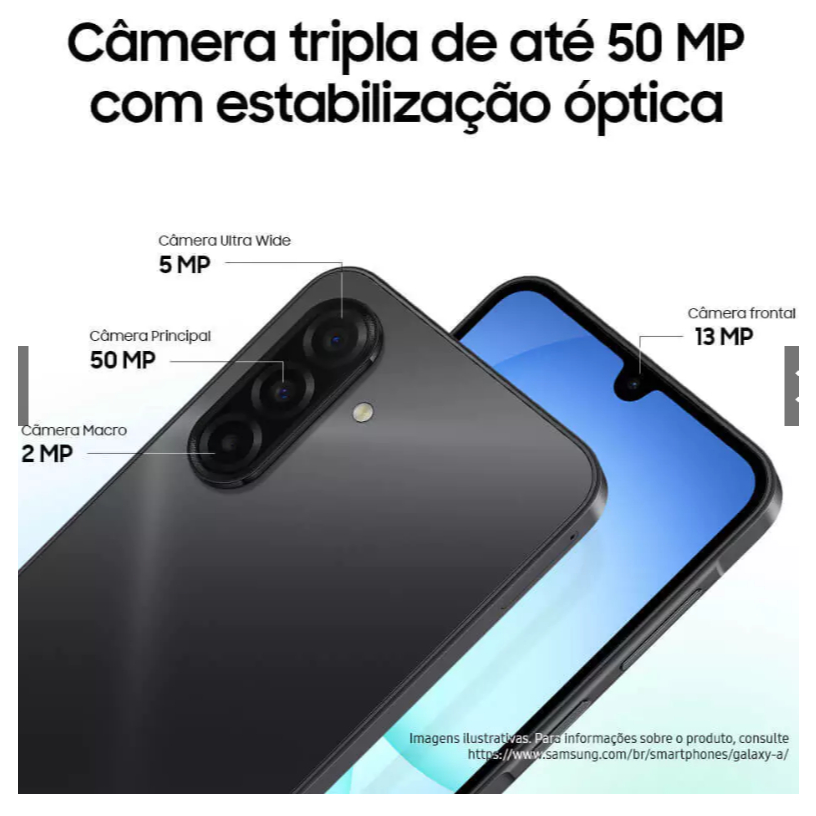 Celular Samsung Galaxy A17 com IA, 128GB de armazenamento, 4GB RAM, Câm 50MP, Tela 6.7", NFC, (PRETO)