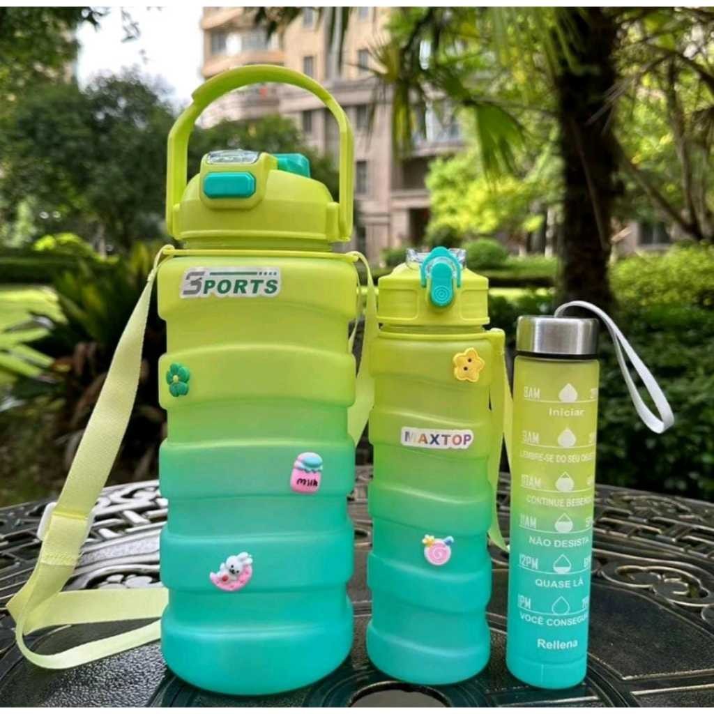 Kit 3 Garrafa Agua Squeeze Galão Com Lembretes de Beber Agua Novo Estilo