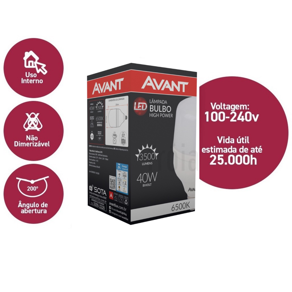 Lâmpada Led 40w Bulbo Branco Frio Bivolt 6500k Luz Branca Alta Potencia