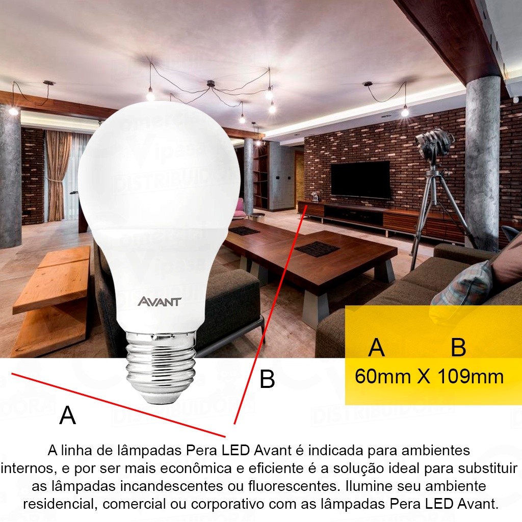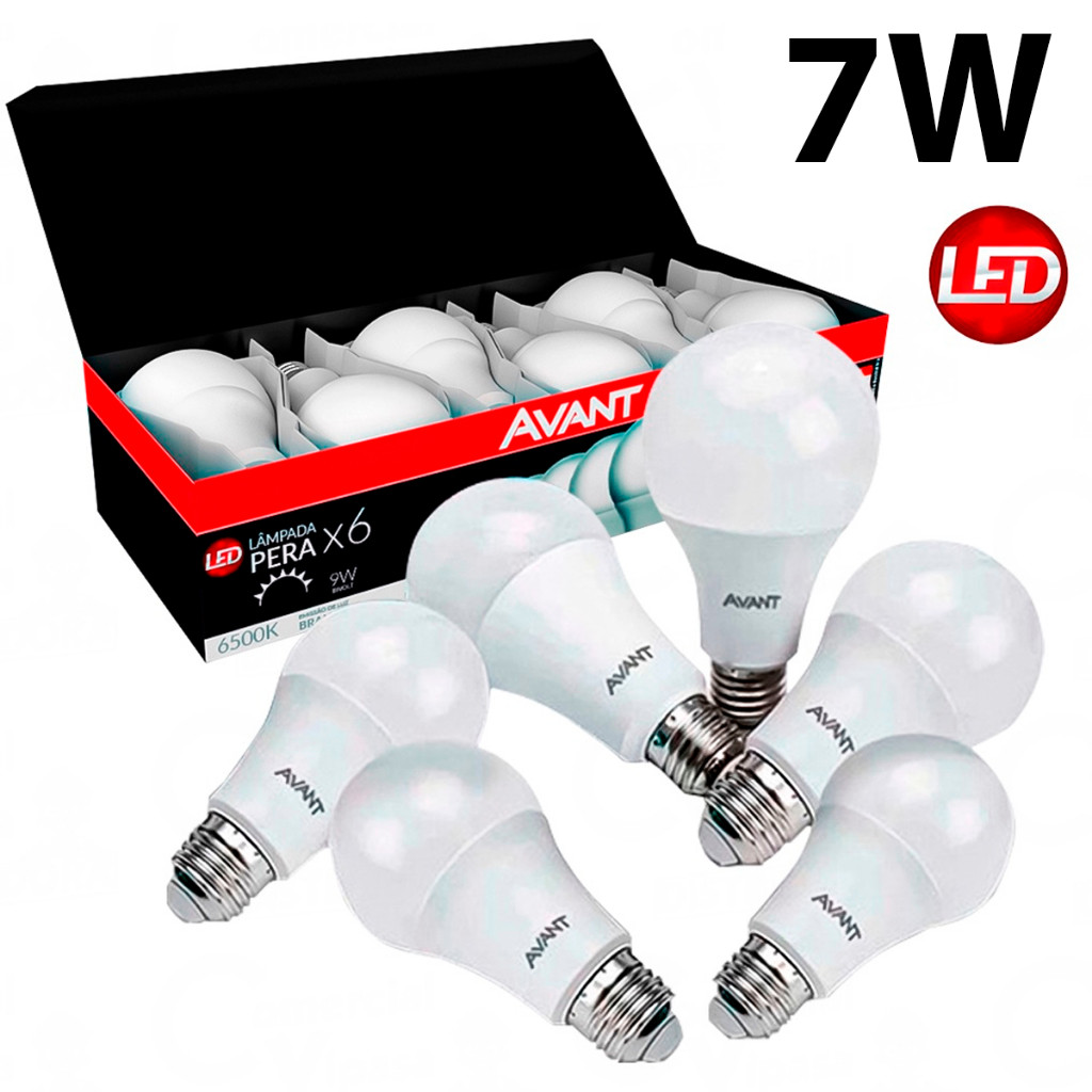 Jogo Pack 10 Lâmpadas Bulbo Pêra 7W 6500k Luz Led Branco Frio Casa Comércio Interno Bivolt AVANT