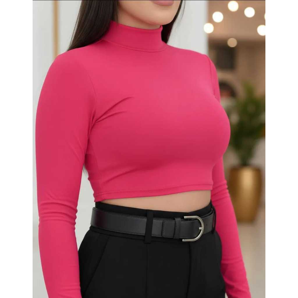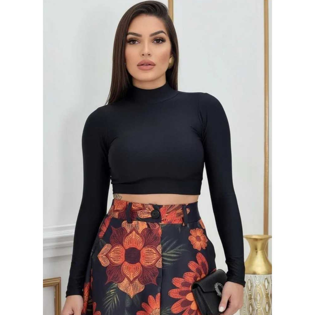 Cropped Gola Alta Manga Longa Em Suplex/casual ou esportes