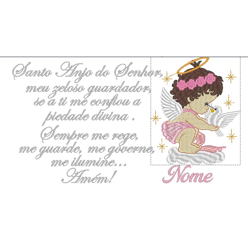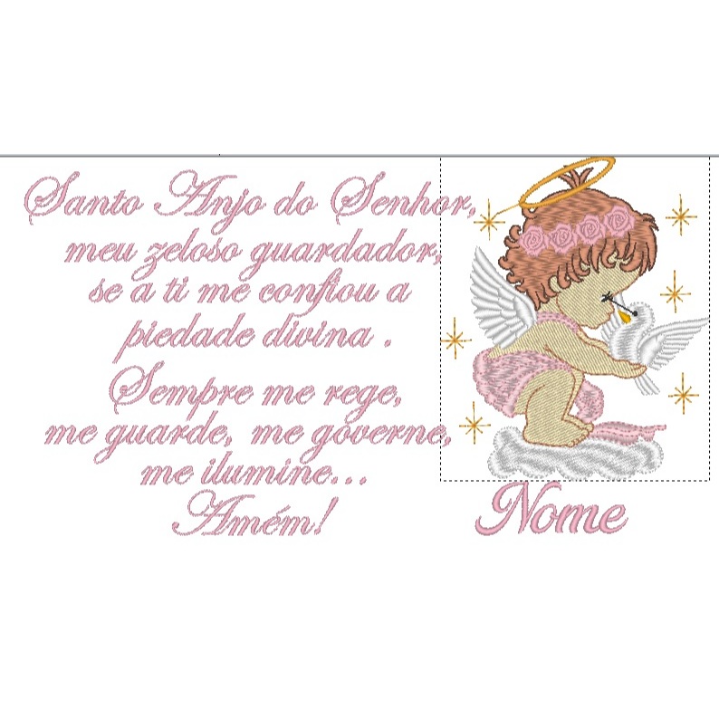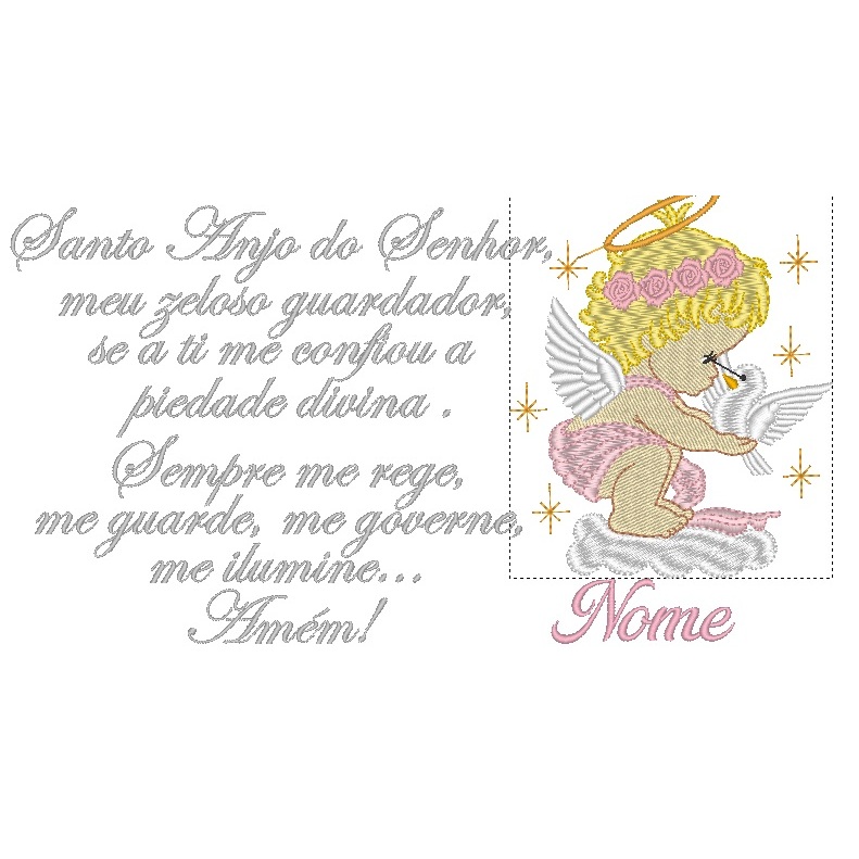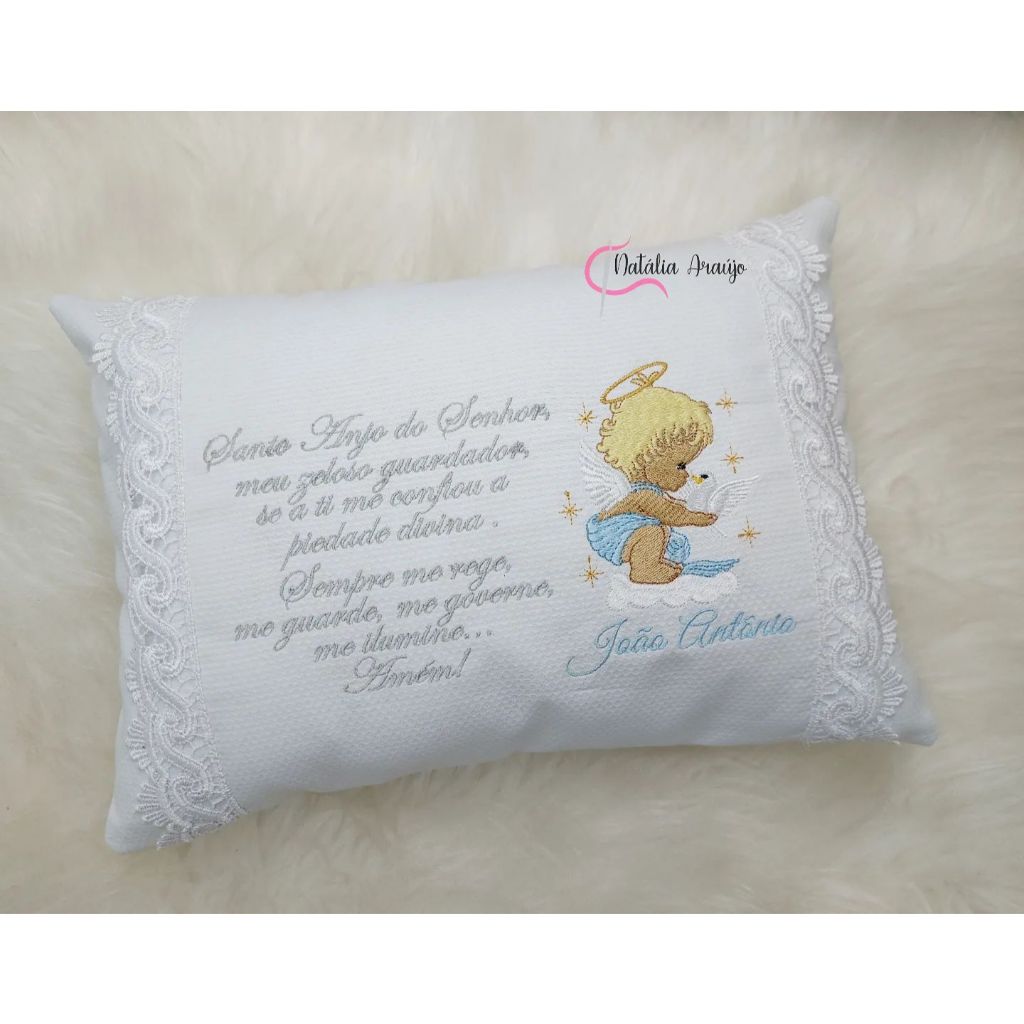 Almofada de Bebê Oração do Anjo da Guarda bordada Personalizada com Nome