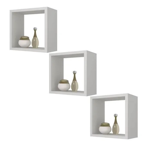 Kit 3 Nichos 20x20 Sala Cozinha Banheiro Parede MDF Casa Quarto Bebe Decoração Preto ou branco Montado Quadrado
